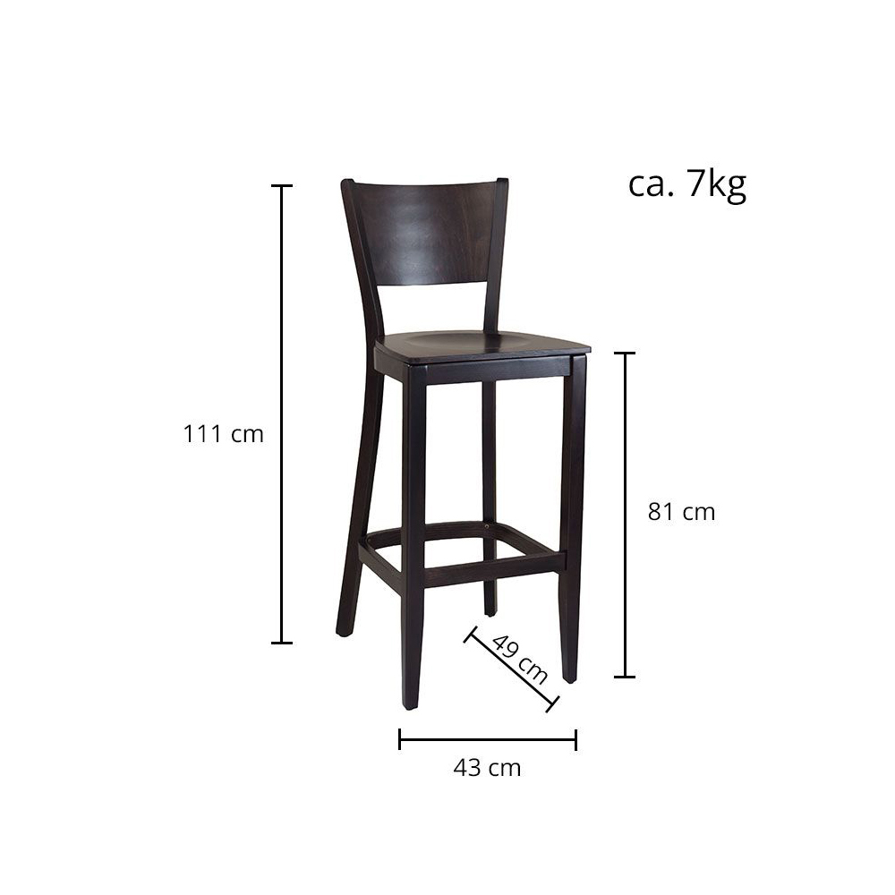 Der Barhocker ist mit seiner Sitzhöhe von 81 cm für gängige Tresen- und Thekenhöhen zwischen 105 - 115 cm konzipiert und fügt sich problemlos in standardisierte Layouts ein.