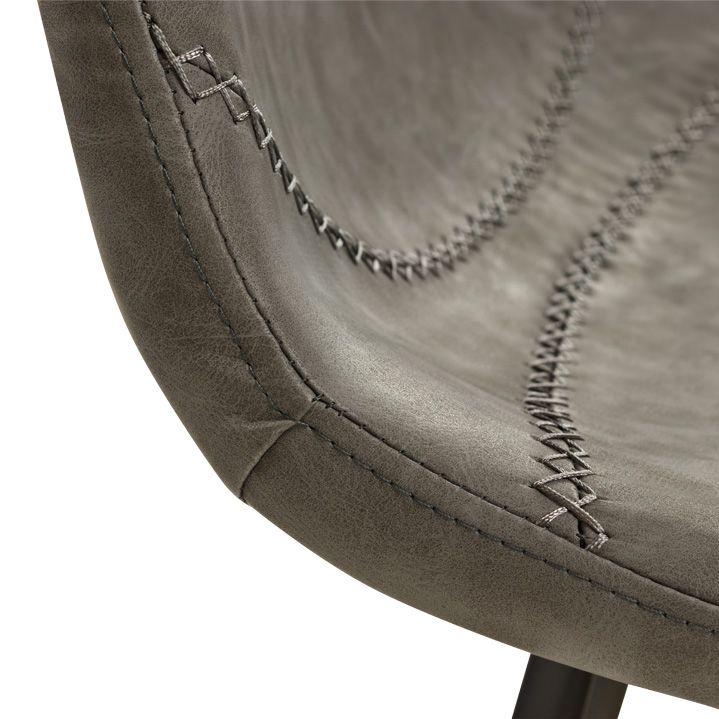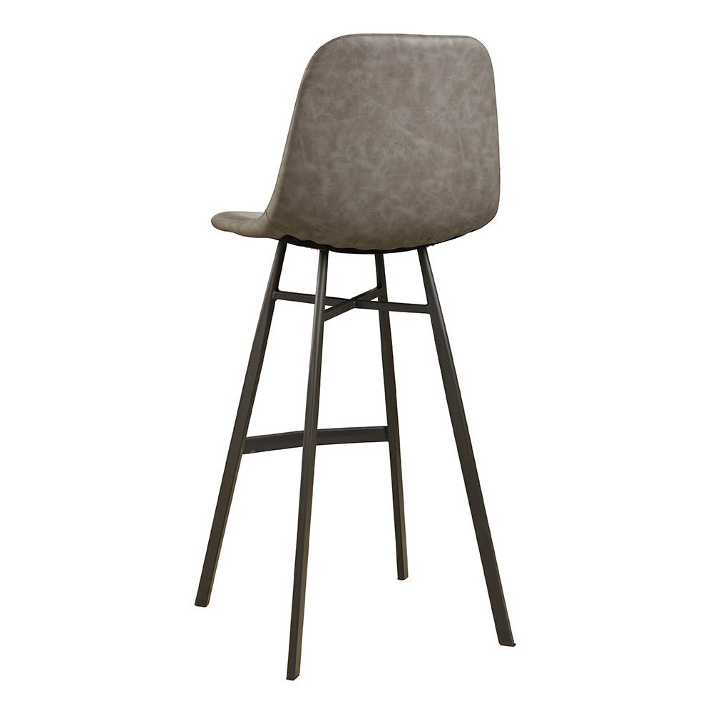 Der Jones-Bar-Grey ist ein Metallbarhocker im Industrial-Look. Während das Gestell aus massivem Metall ist, verleiht die gepolsterte Kunstleder-Sitzschale dem Stuhl die erwartete Bequemlichkeit.