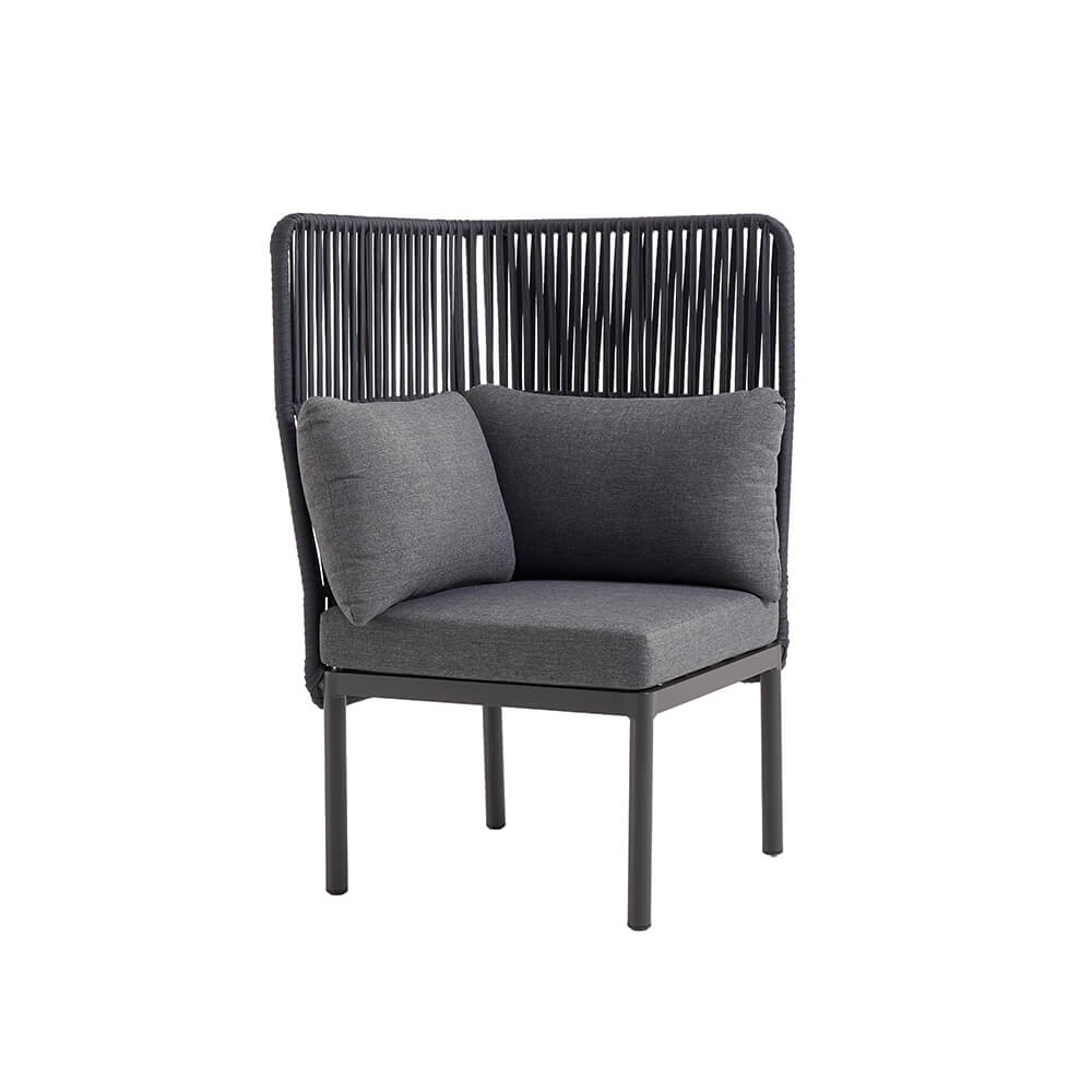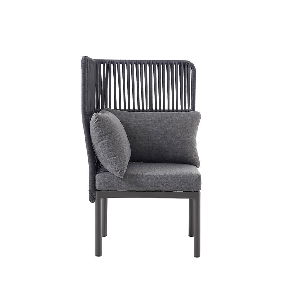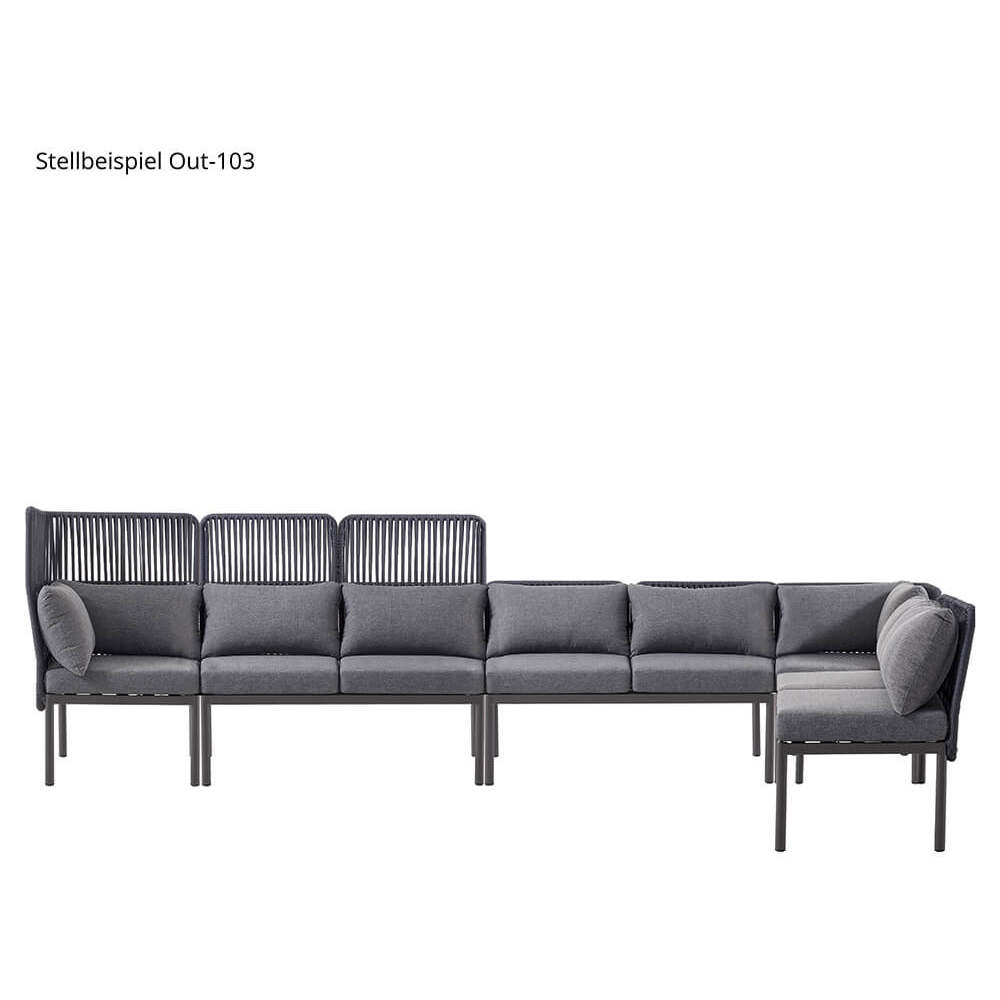 Das Out-103 Ecke High Outdoor-Bankelement bietet moderne Eleganz und hohe Funktionalität für den gewerblichen Einsatz. Es eignet sich für Gastronomiebetriebe, Hotels, Cafés und öffentliche Einrichtungen, die ihre Außenterrassen, Lounges oder Veranstaltungsbereiche hochwertig und komfortabel gestalten möchten. Mit einem Seilgeflecht Rücken in Dark Grey RT04A und einem pulverbeschichteten Aluminumgestell bietet es nicht nur eine langfristige Nutzung und Widerstandsfähigkeit, sondern auch eine ansprechende, moderne Optik, die zu nahezu jedem Außendesign passt.