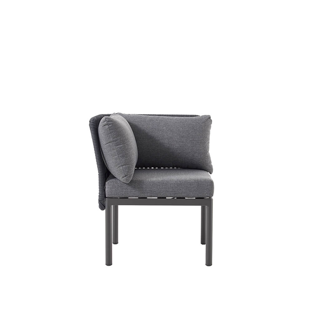 Das Out-103 Ecke Outdoor-Bankelement vereint moderne Eleganz und hohe Funktionalität für den gewerblichen Außeneinsatz. Es ist speziell für Gastronomiebetriebe, Hotels, Cafés und öffentliche Einrichtungen entwickelt, die ihre Außenterrassen, Lounges und Veranstaltungsbereiche aufwerten möchten. Mit einem Seilgeflecht Rücken in Dark Grey RT04A und einem pulverbeschichteten Aluminiumgestell überzeugt dieses Möbelstück nicht nur mit Widerstandsfähigkeit, sondern auch mit Stil und Komfort.