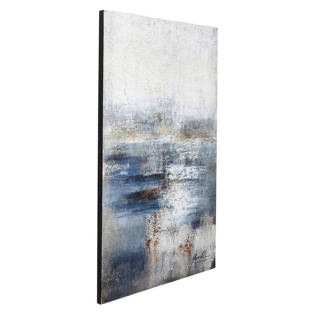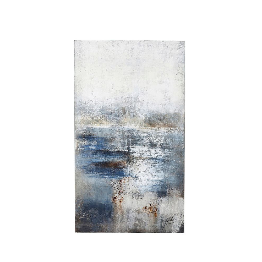 Ein beeindruckend großes Ölgemälde, das in herrlich kühlen Farben von Hand gefertigt wurde. Es dient als dekorativer Ankerpunkt und fesselt den Blick. Trotz seiner XL-Größe wirkt es besonders gut in kleinen Räumen und lädt dazu ein, in Tagträumen zu versinken.