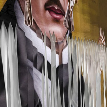 - Banksy-Style: Die Leinwand ist zur Hälfte in Streifen geschnitten. Aufwendiger Druck auf Leinwand im Stil alter Ölgemälde