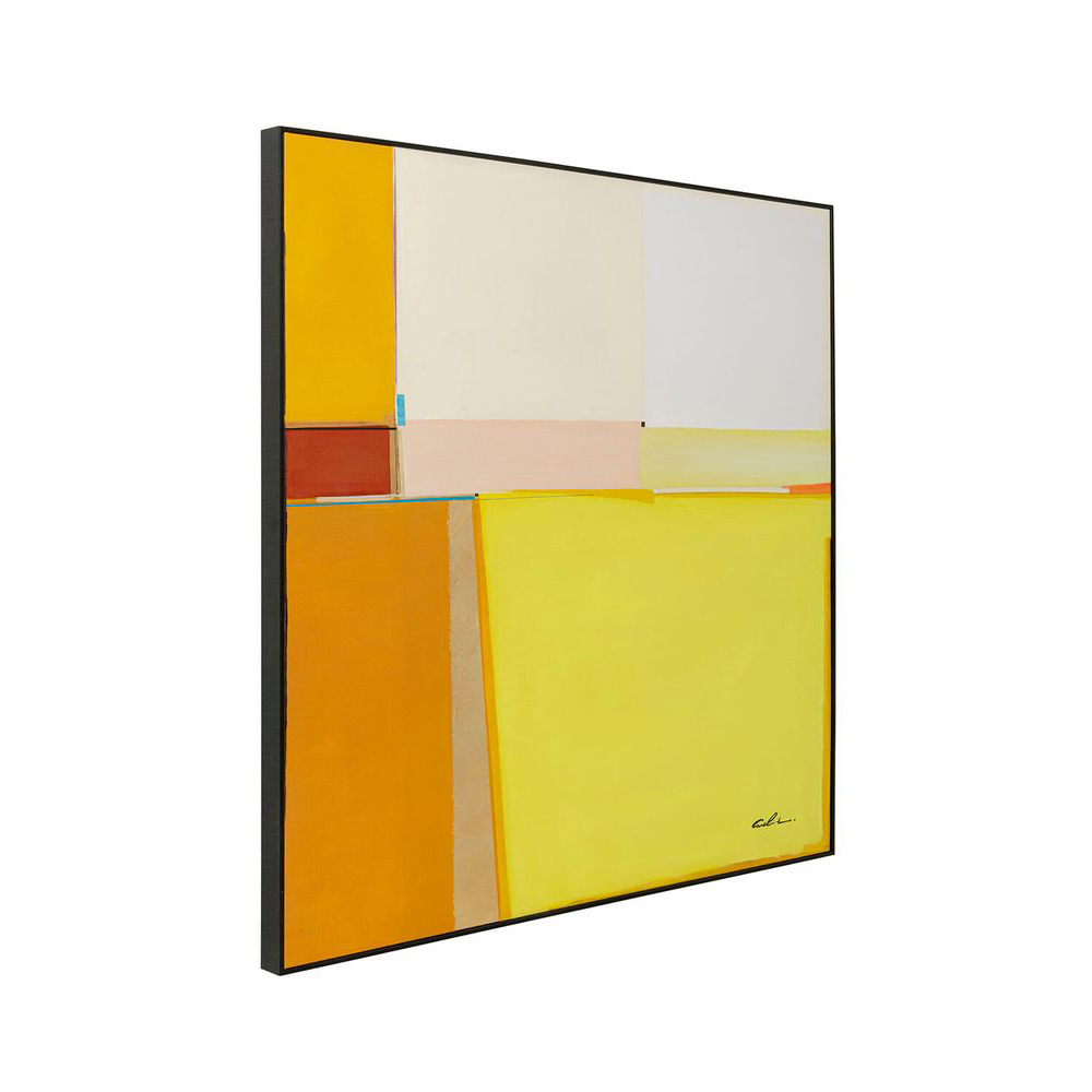Ein großes Wandbild in den warmen Farbtönen Gelb, Orange und Beige zieht alle Blicke auf sich. Jedes Stück ist ein handgemaltes Unikat, das mit Acrylfarbe auf Leinwand gestaltet wurde. Quadratische KARE-Design-Bilder eignen sich perfekt als Wanddekoration über Ihrer Wohnlandschaft.