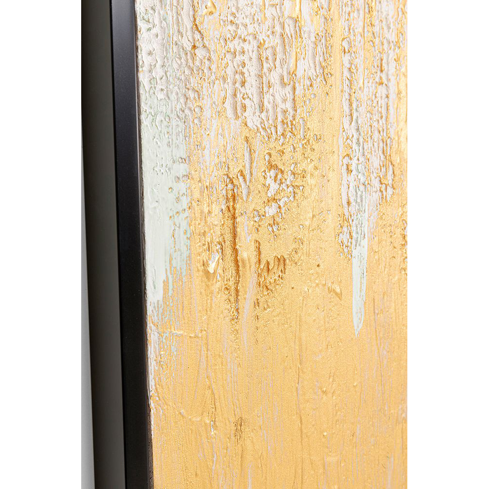 Für alle, die Gold und Glamour lieben: Hier ein gerahmtes Acrylbild in den Maßen 120x80cm. Der hochwertige Massivholzrahmen verleiht dem Wandbild eine edle Note. Das abstrakte Motiv glänzt sowohl als Teil einer Galeriewand als auch solo an der Wand.
