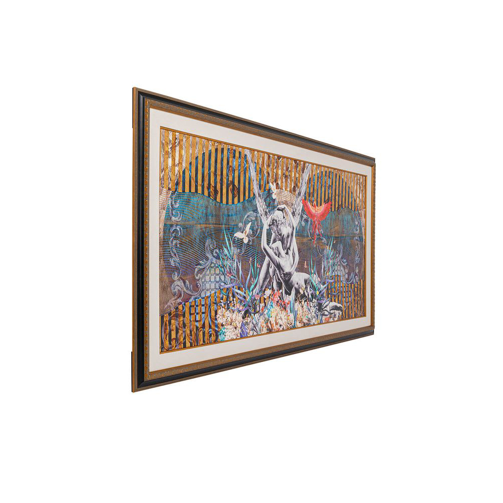 Bereichern Sie Ihre Heimgalerie mit diesem großen, farbenfrohen Wandbild, das in einem klassischen Rahmen präsentiert wird. Dieses beeindruckende XXL-Format ist ideal für große Wände, Treppenaufgänge und sogar Konferenzräume geeignet. Der Bilderdruck erfolgt auf hochwertigem Kunstdruckpapier, während der massive Holzrahmen im Antik-Stil in Schwarz und Gold eine edle Note verleiht. Dank der bereits vormontierten Haken auf der Rückseite gestaltet sich die Aufhängung besonders einfach.