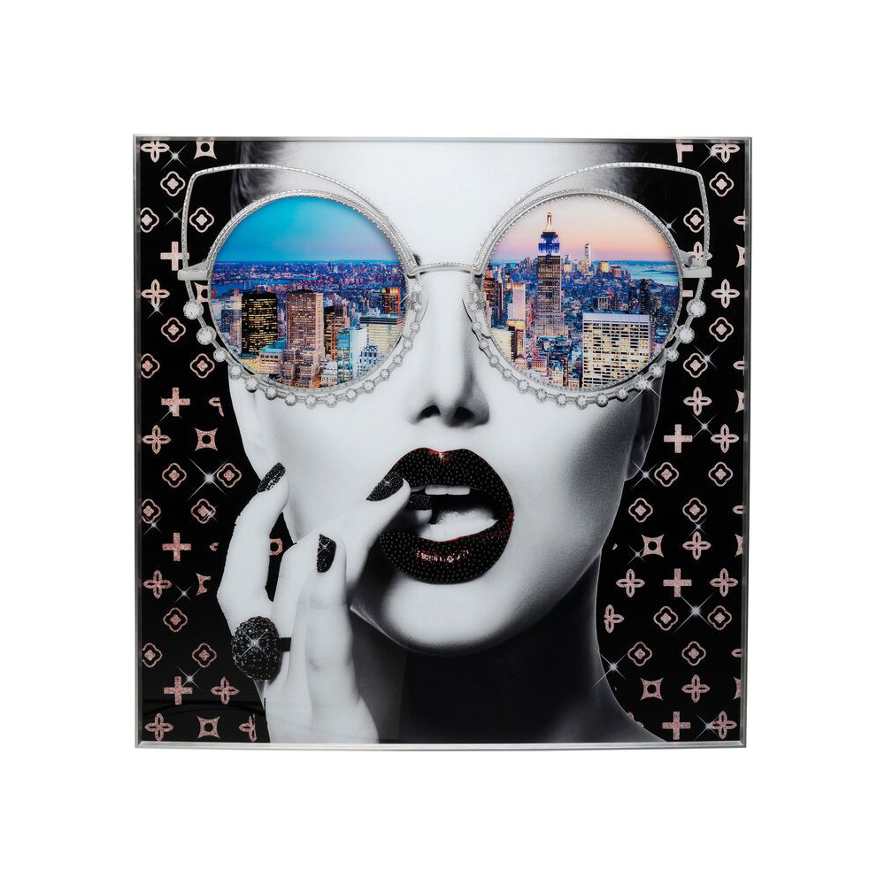 Dieses stilvolle gerahmte Bild mit einem New Yorker Motiv ist eine echte Bereicherung. Der Bilddruck erfolgt auf hochwertigem Kunstdruckpapier und wird von klarem Sicherheitsglas (ESG) geschützt. Der Rahmen besteht aus Polystyrol und ist mit klarem Glas und Strasssteinen verziert. Das Bild kann horizontal an der Wand montiert oder auch horizontal stehend verwendet werden. Es weist teilweise handgefertigte Elemente auf. Jedes Exemplar ist ein Unikat.