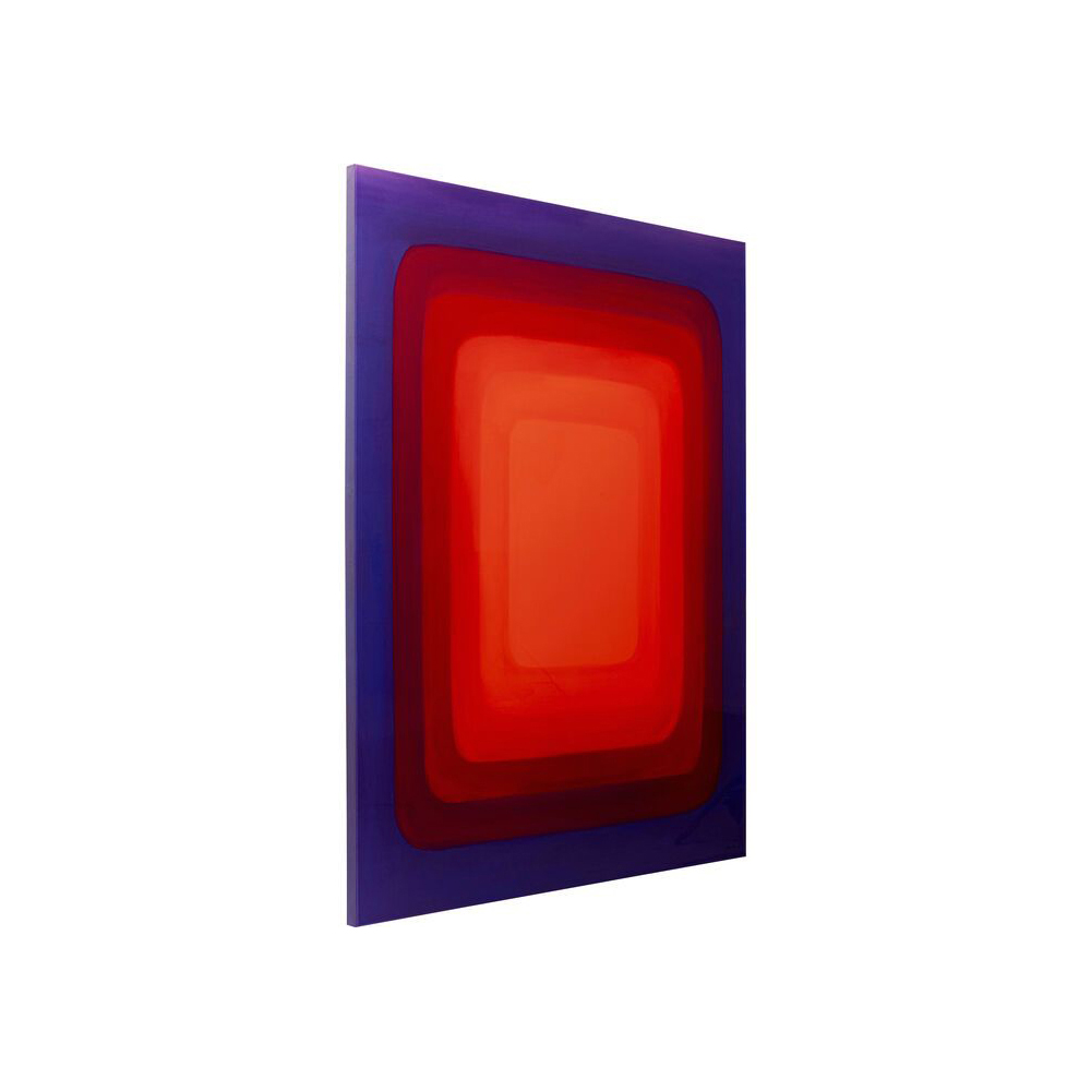 Dieses Leinwandbild besticht durch seine lebendigen roten Farbtöne. Die Leinwand besteht aus Baumwolle (Canvas) und ist mit einem Rahmen aus hochglänzendem Polyresin und einer Rückwand aus naturbelassener mitteldichter Faserplatte aus Tanne versehen. Es kann vertikal an der Wand montiert werden, wobei jedes Exemplar einzigartig ist.