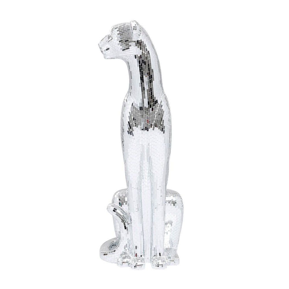 Die majestätische Panther-Dekofigur, besetzt mit Spiegelplättchen, verleiht jedem Raum eine edle Atmosphäre. Mit einer Höhe von ca. 150 cm ist sie ein beeindruckender Blickfang, der die Aufmerksamkeit Ihrer Gäste sofort auf sich zieht und faszinierende Lichtreflexe erzeugt. Diese Figur eignet sich perfekt für Wohnzimmer, Büros, Empfangsbereiche oder exklusive Geschäfte und verbreitet überall ein Flair von Exklusivität und Luxus.