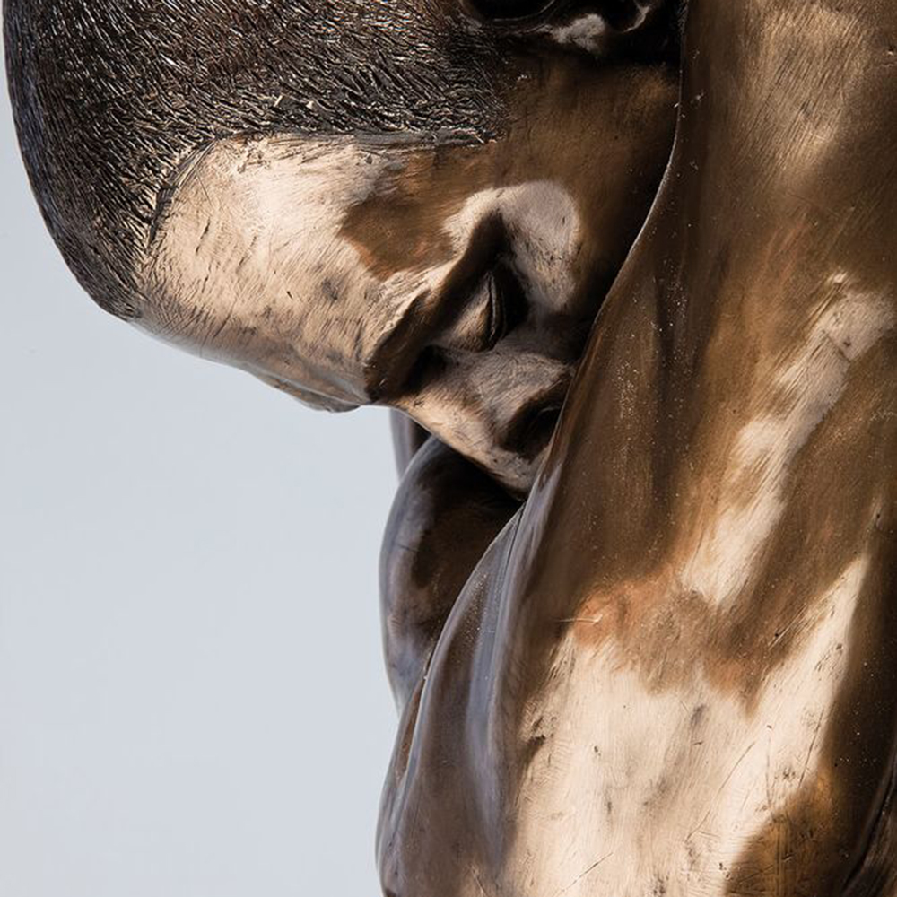 Diese Figur besticht durch ihre zeitlose und ästhetische Gestaltung, die sowohl muskulös als auch charaktervoll wirkt. Der warme Bronzeton verleiht ihr eine edle Optik. Es sind auch andere Varianten erhältlich.