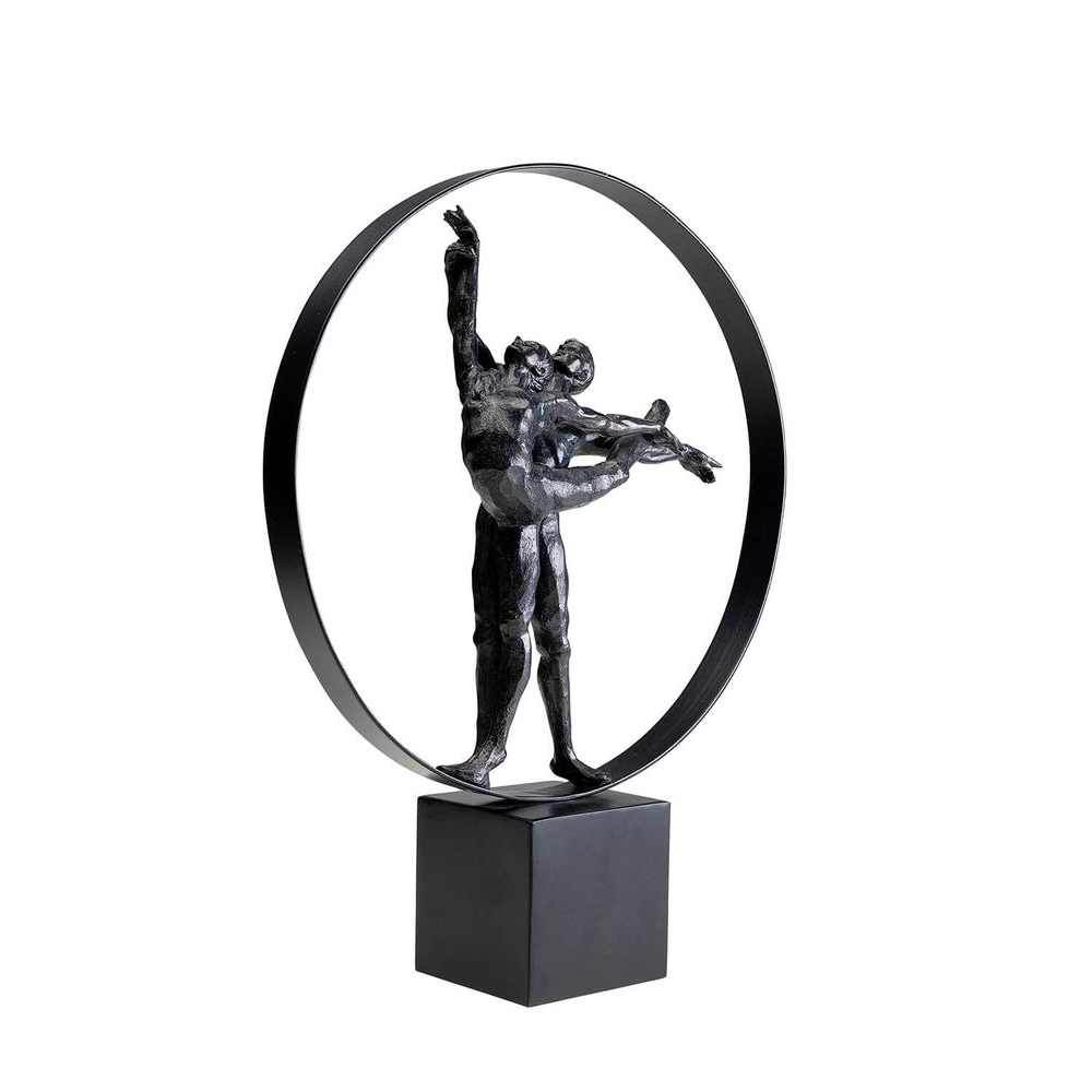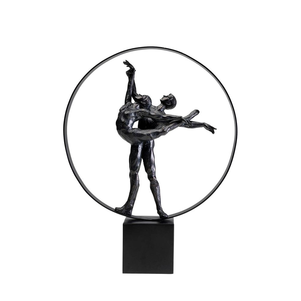 Ein dekoratives Objekt in Form von Ballett-Tänzern, präsentiert in einem eleganten Schwarzton. Teils von Hand gefertigt aus Stahl und Polystone, dann sorgfältig lackiert. Dieses kunstvolle und edle Schmuckstück erinnert an eine moderne Bronze-Skulptur aus einer Galerie. Es eignet sich hervorragend, um in jedem Wohnstil einen dekorativen Akzent zu setzen.