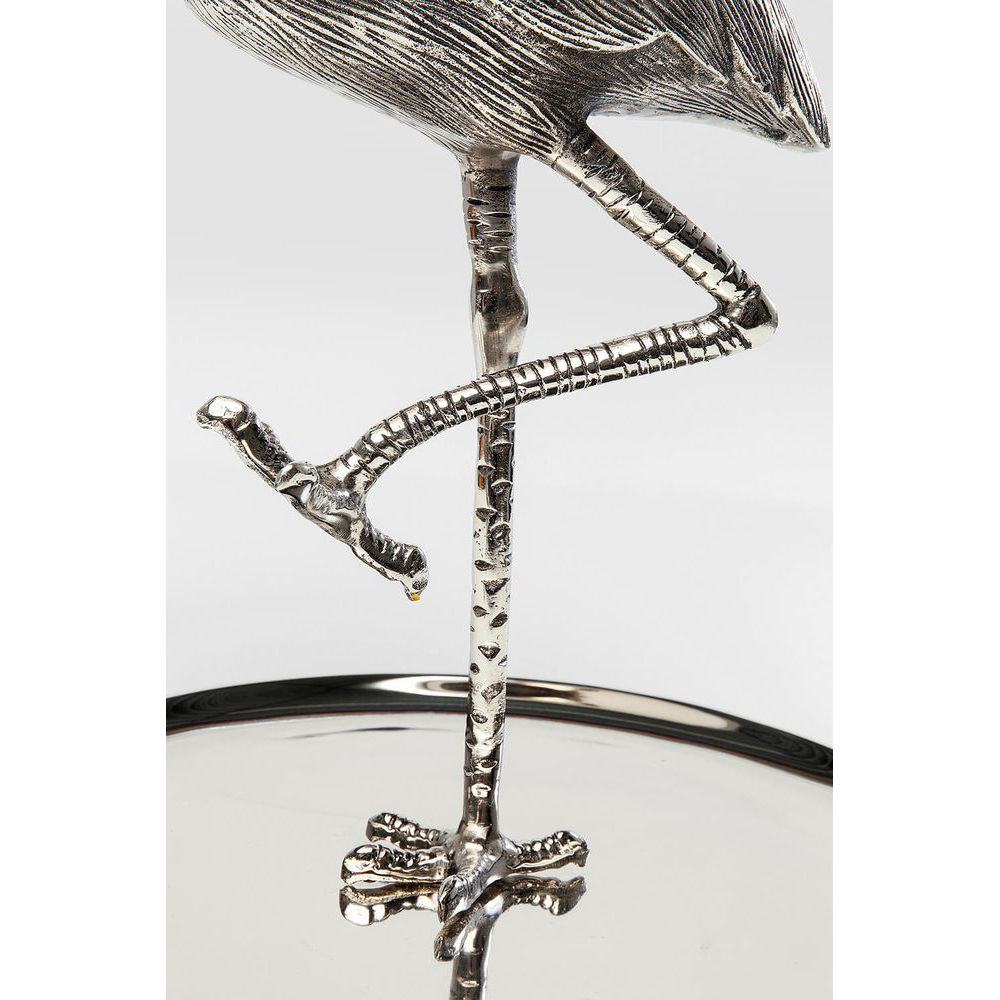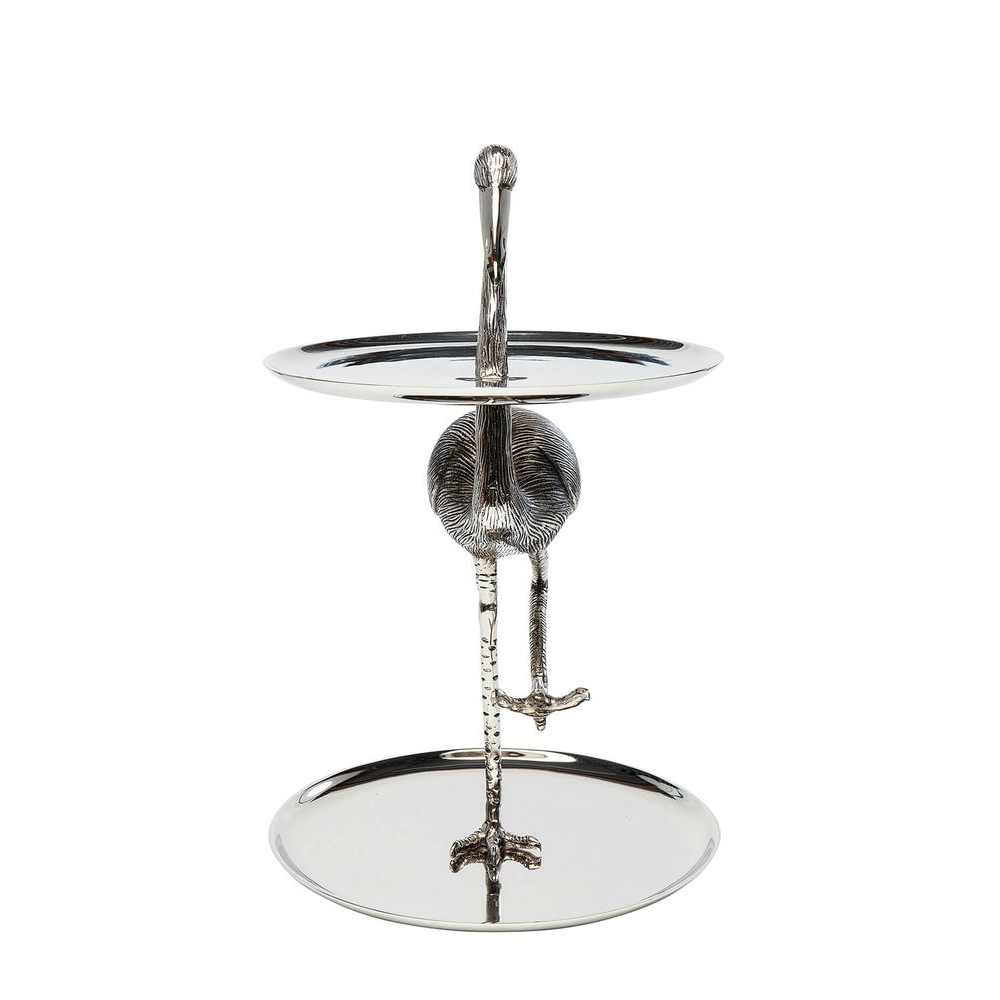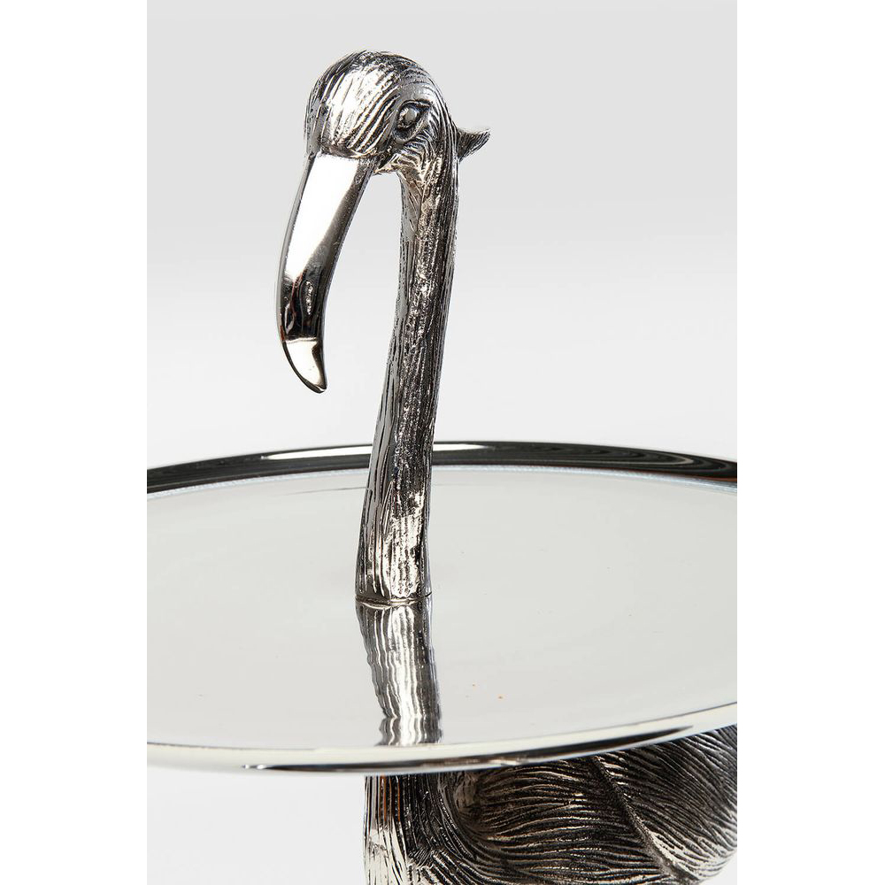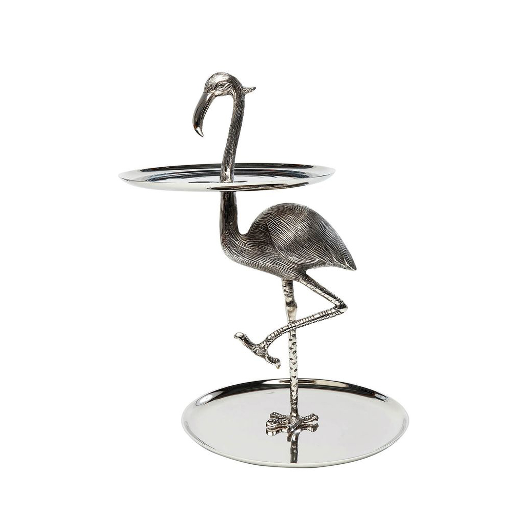 Der majestätische Flamingo präsentiert sich anmutig und stolz. Mit seinem silbernen Glanz dient er als elegante Etagere, auf der köstliches Fingerfood, edler Schmuck oder auch Kosmetikartikel stilvoll präsentiert werden können. Diese luxuriöse Etagere wurde sorgfältig von Hand gefertigt und zieht alle Blicke auf sich. Sie verleiht Ihrem Zuhause einen Hauch von Exotik und passt zu jedem Einrichtungsstil.