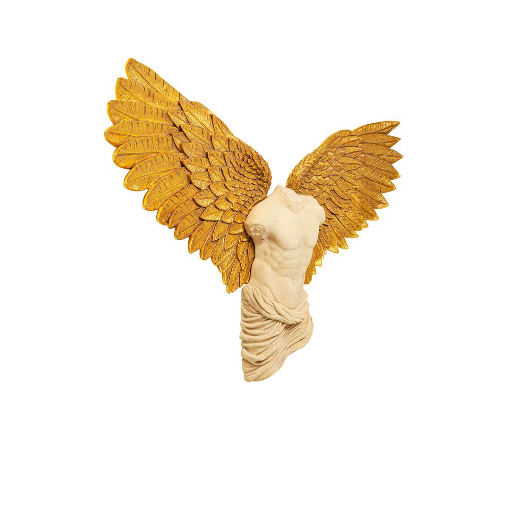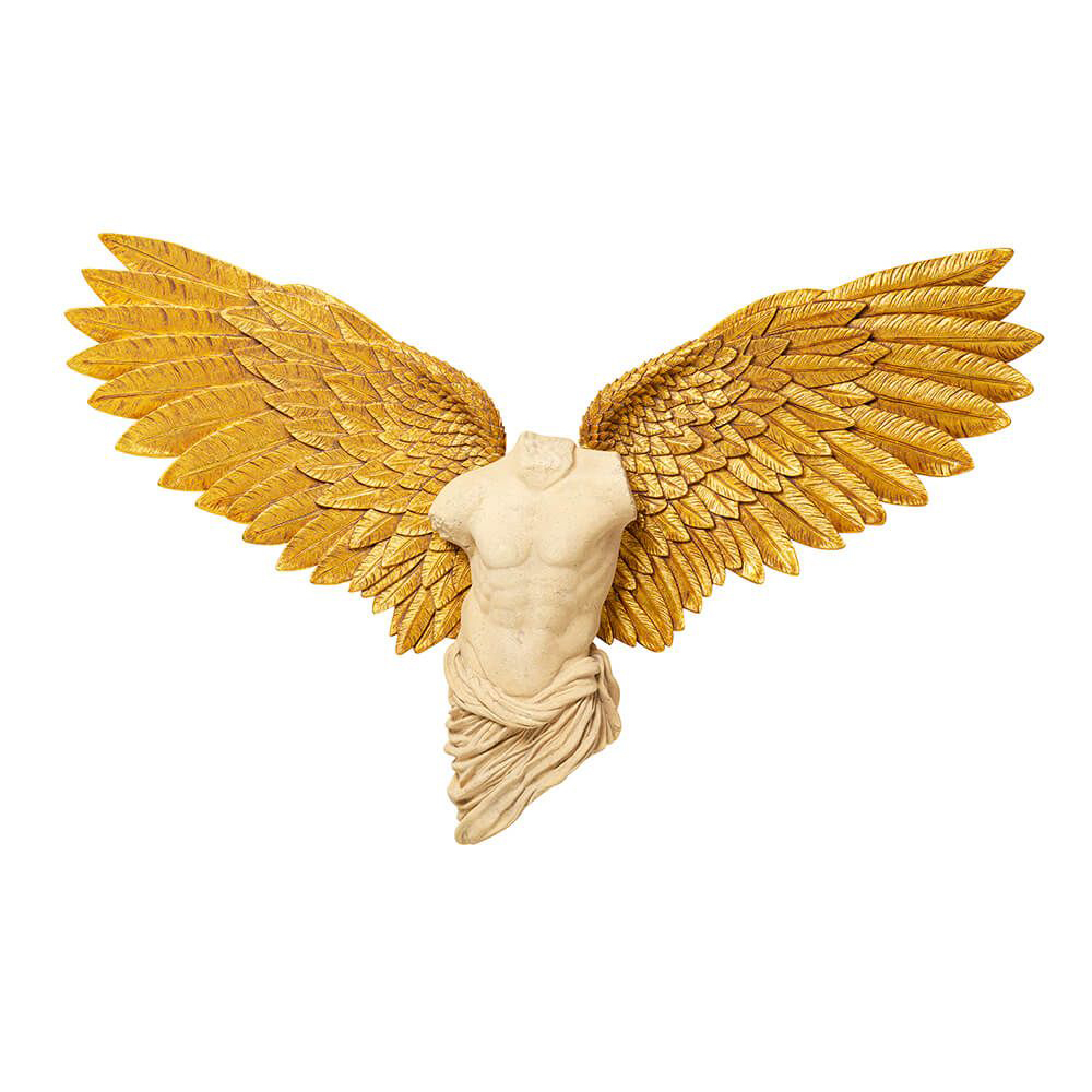 Handgefertigt aus Kunststein und lackiert, ist diese große Wanddekoration in Weiß-Gold ein echtes Highlight. Mit einer Größe von 136x208x26,5 cm und einer griechischen Skulptur mit detailgetreuen Engelsflügeln sorgt sie für einen Wow-Effekt. Das handgearbeitete Unikat eignet sich perfekt als Wandobjekt im Eingangsbereich, im Showroom oder im Hotel. Jedes Exemplar ist einzigartig und verleiht dem Raum eine elegante und kunstvolle Note. Diese vertikal montierbare Wanddekoration ist ein echter Blickfang und zieht alle Blicke auf sich. Mit ihrer edlen Farbkombination aus Weiß und Gold ist sie eine stilvolle Ergänzung für jeden Raum.