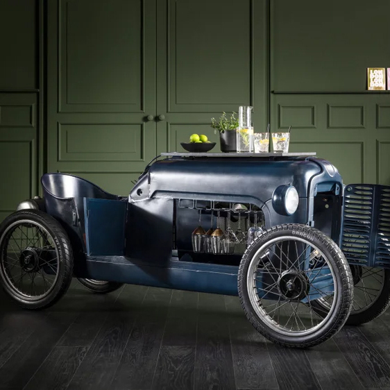 • Hausbar in Blau aus Metall mit vielen authentischen Details für Motorsport Fans