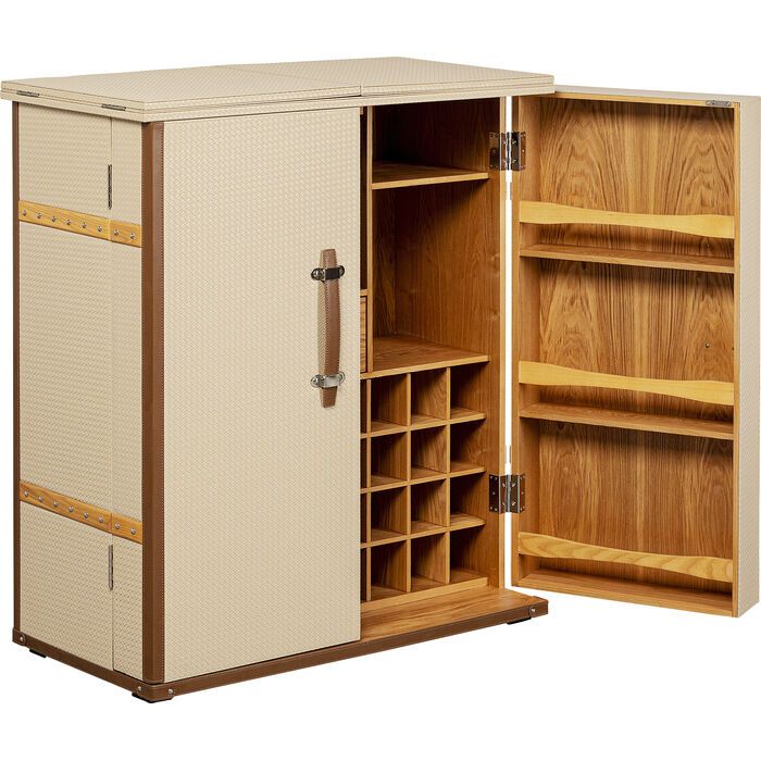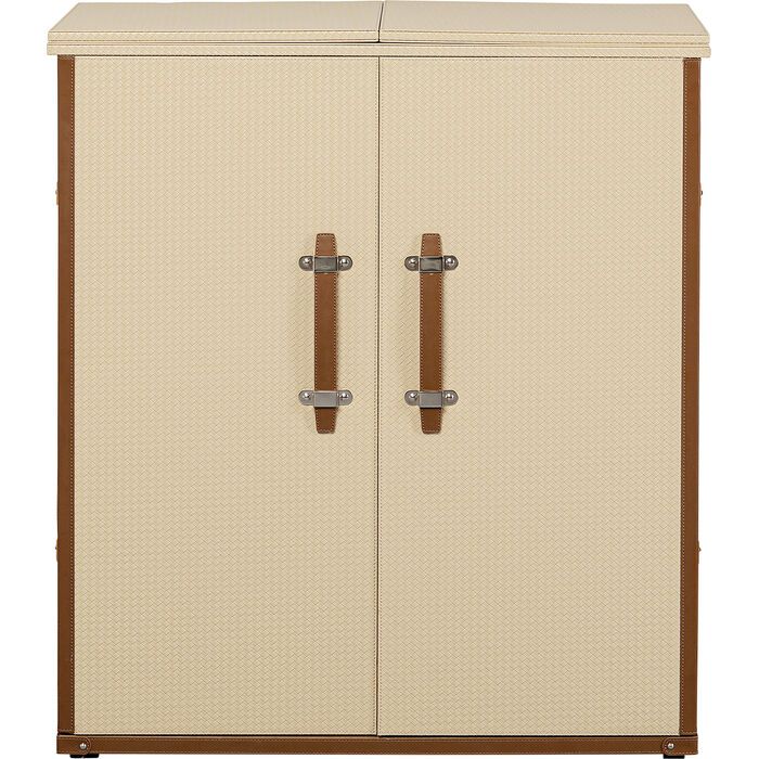 Der Barschrank Venezia Creme 100x114cm ist ein elegantes und praktisches Möbelstück für Ihre Gastronomie. Der Korpus des Schranks besteht aus mitteldichter Faserplatte, die gebeizt und lackiert ist, während das Weinregal aus Esche Furnierschichtholz furniert ist. Die Beschläge bestehen aus Stahl, der verzinkt ist, und der Schrank verfügt über Rollen für eine einfache Beweglichkeit. Die Griffe sind textil polyurethanbeschichtet und der Bezug des Schranks besteht zu 100 % aus textil polyurethanbeschichtetem Material.