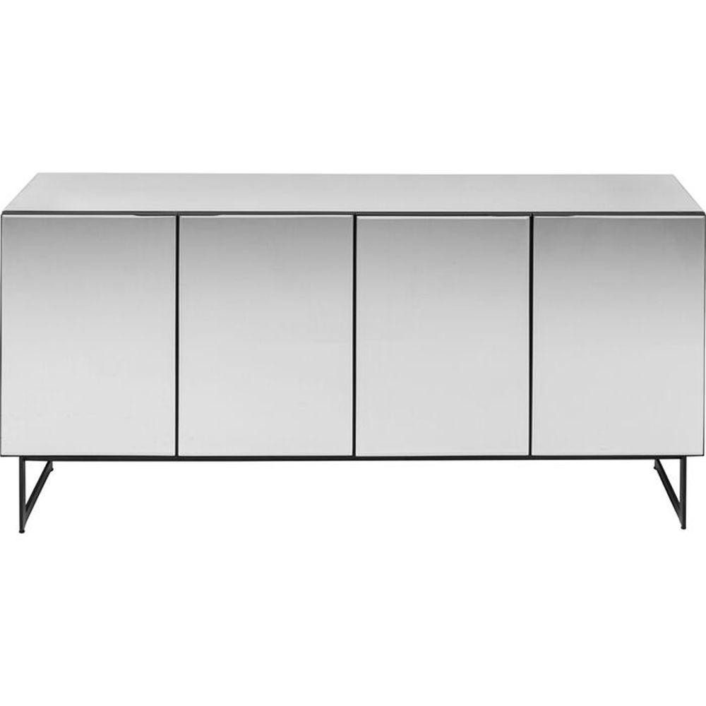 - Sideboard verspiegelt mit vier Türen, 80x160x45 cm (H/B/T) mit Beinen aus Metall in Schwarz