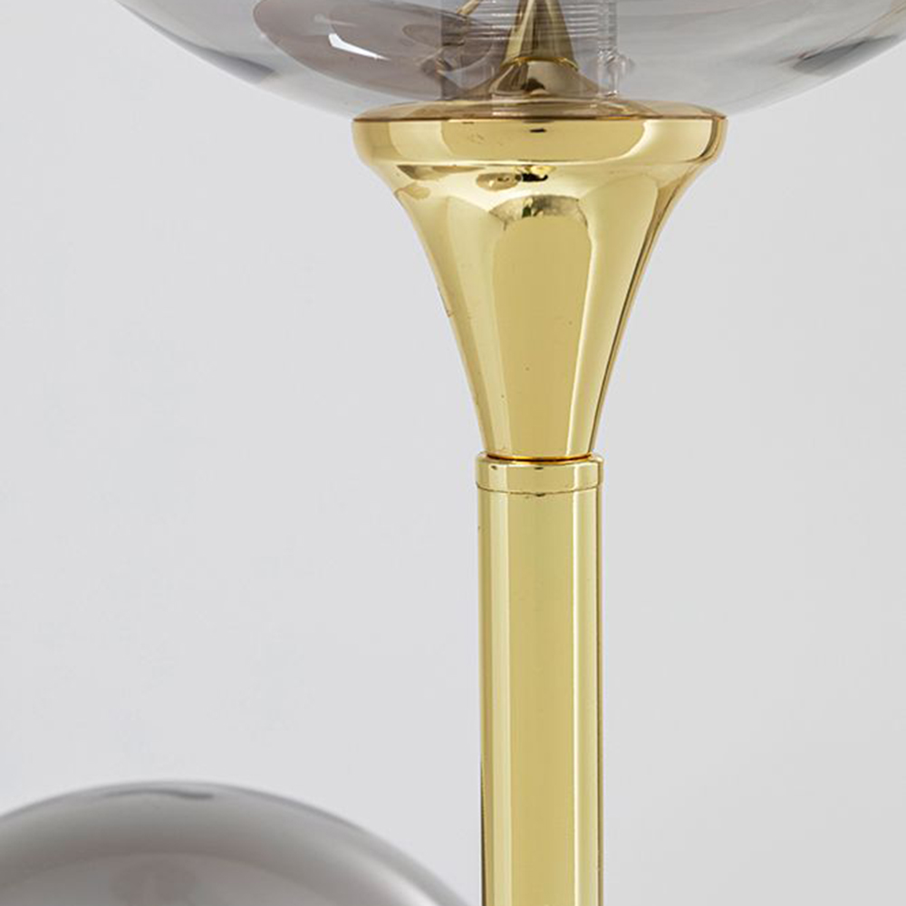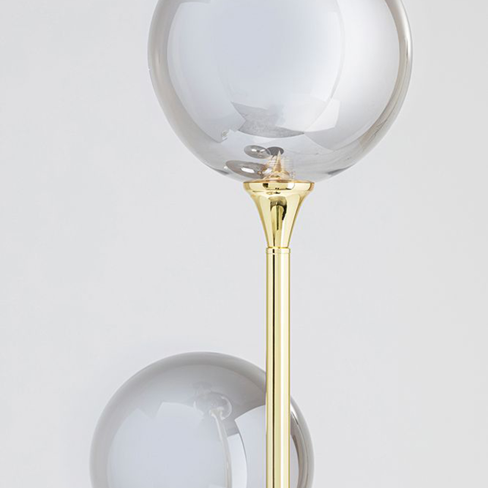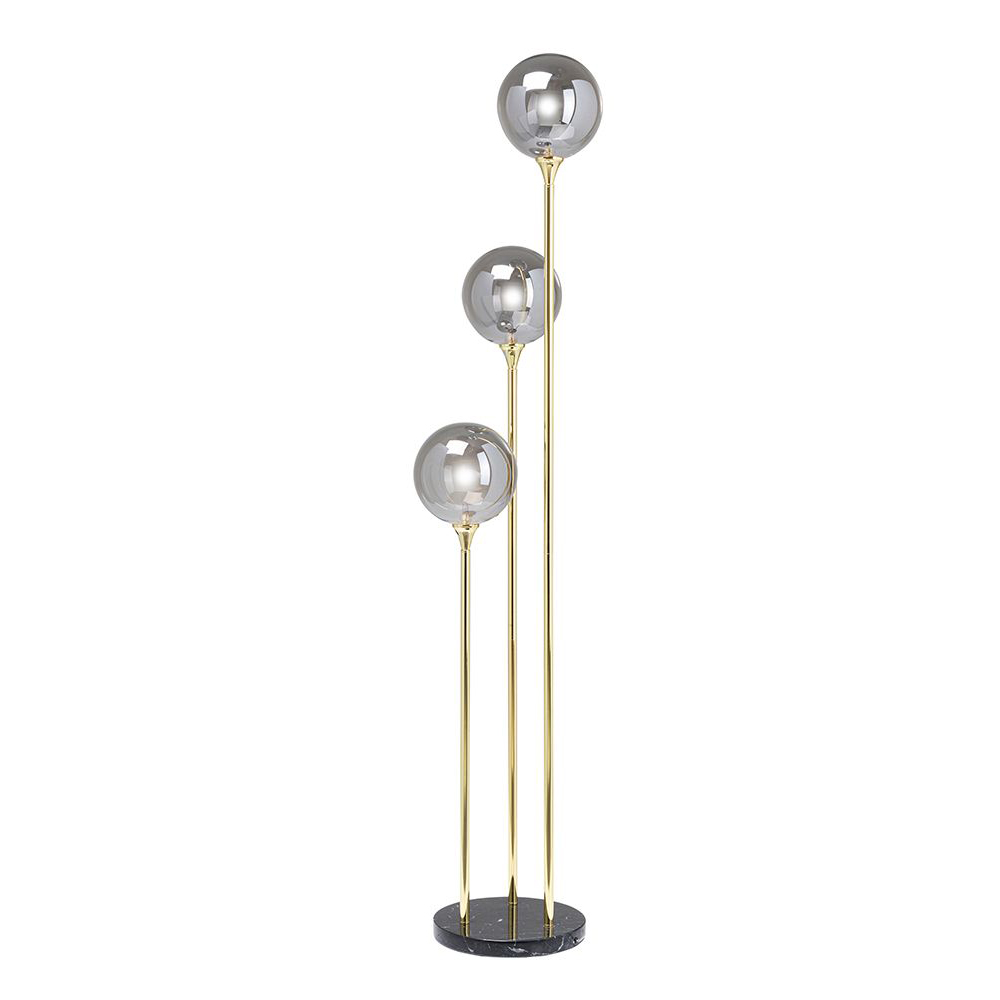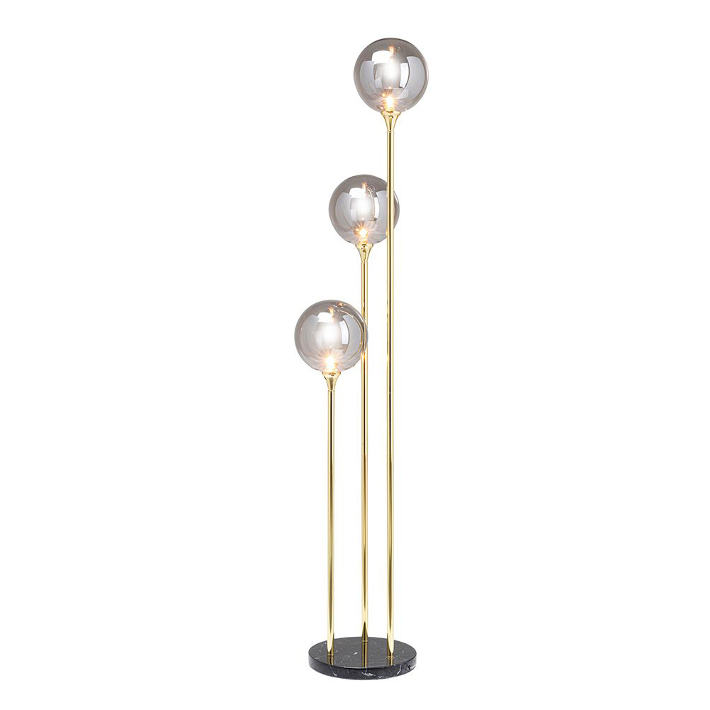 Diese glamouröse Stehleuchte ist ein echtes Schmuckstück, handgefertigt mit einem Fuß aus Marmor und drei runden Schirmen aus leicht verspiegeltem Glas. Ihr elegantes Design verleiht jedem Raum einen Hauch von modernem Glamour, sei es in einem Mailänder Penthouse oder in Ihrem Zuhause. Die Glaskugel-Schirme erzeugen faszinierende Reflexionen, selbst wenn sie nicht eingeschaltet sind. Trotz ihres eindrucksvollen Erscheinungsbildes ist die Stehlampe nicht zu groß und eignet sich perfekt, um auch kleine Ecken und den Flur zu beleuchten. Besonders neben einer Sitzgruppe kommt diese Stehleuchte zur Geltung und passt sowohl zu einer schicken Samtcouch als auch zu einem modernen Modul-Sofa.
