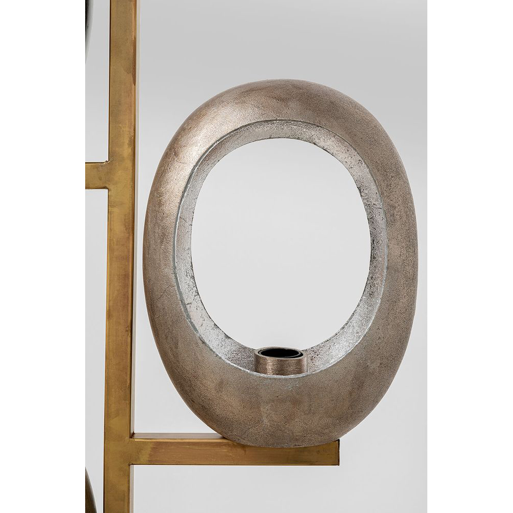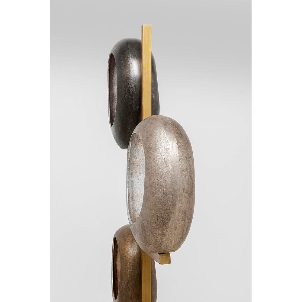 Eine Stehlampe mit außergewöhnlichem Charme: In diesem Schmuckstück spielen die fünf handgefertigten Lampenschirme die Hauptrolle. Die ovalen Schirme sind kunstvoll mit verschiedenen Metallen wie Messing, Nickel und Bronze beschichtet und verleihen den Leuchtmitteln eine einzigartige Umgebung. Diese imposante Stehleuchte taucht Ihr Büro oder Wohnzimmer auf repräsentative Weise in eine unvergleichliche Atmosphäre.