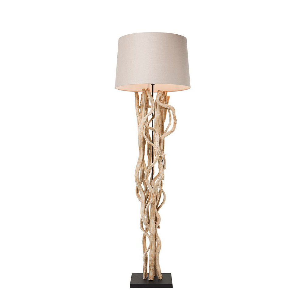 Die Stehlampe besteht aus Holz und hat die Maße 150 x 55 x 55 Zentimeter (H/B/T). Das kreative Design zeichnet sich durch einen Leuchtenfuß aus naturbelassenem, massivem Akazienholz aus. Jede Lampe ist aufgrund der Verwendung von Naturmaterialien ein Unikat, daher können leichte Abweichungen von der Abbildung möglich sein. Der beigefarbene Lampenschirm mit Bezug aus reiner Baumwolle sorgt für dezentes, indirektes Licht. Das benötigte Leuchtmittel ist 230 V, Fassung E27, Anzahl Leuchtmittel 1, maximal 60 Watt (Leuchtmittel nicht inklusive).