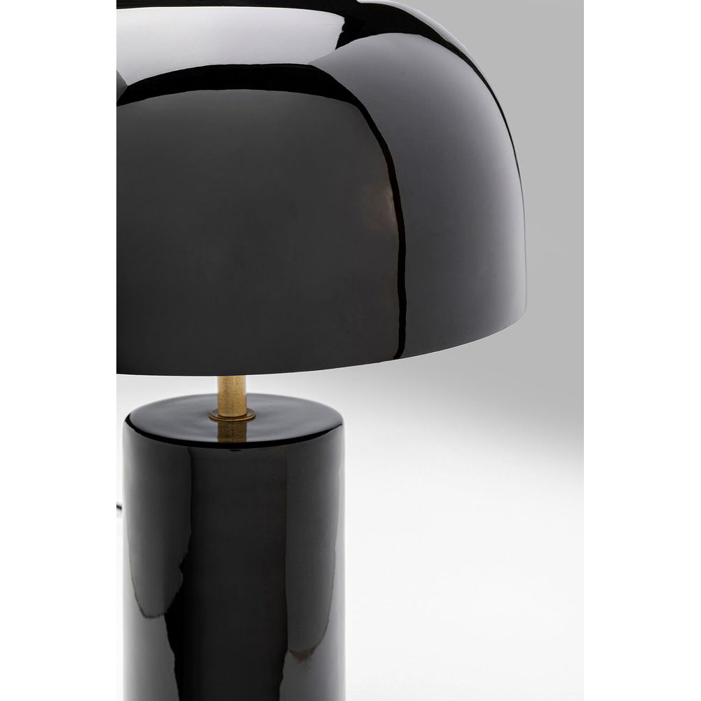 - Mittelgroße, handgearbeitete Tischlampe in Pilzform aus schwarz lackiertem Stahl und zylinderförmigem Fuß