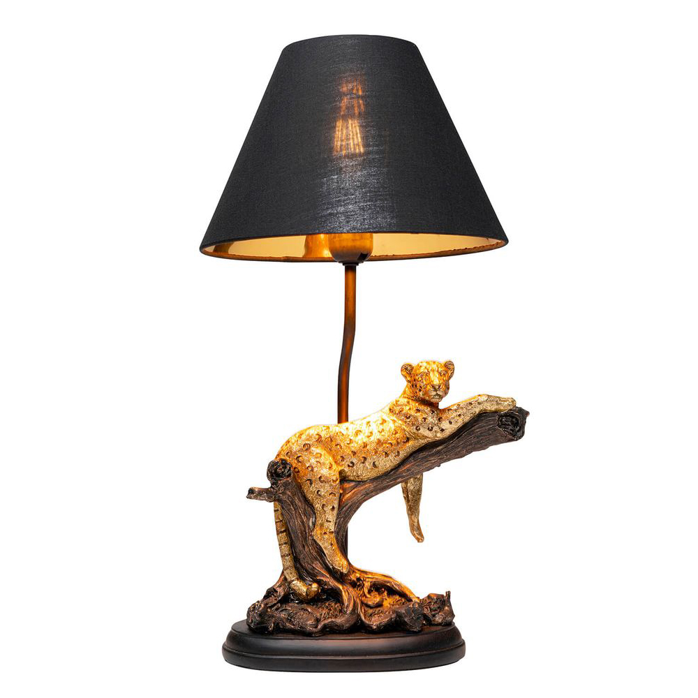 Die Tischleuchte in Schwarz mit einer Leopardenfigur im Sockel wird mit einer Spannung von 230 V betrieben und unterstützt eine Frequenz von 50/60 Hz. Sie verfügt über eine Fassung für E27-Leuchtmittel, wobei maximal ein Leuchtmittel mit einer Leistung von 40 Watt verwendet werden kann (Leuchtmittel sind nicht im Lieferumfang enthalten).