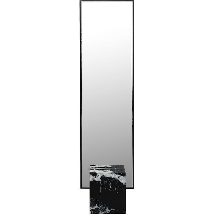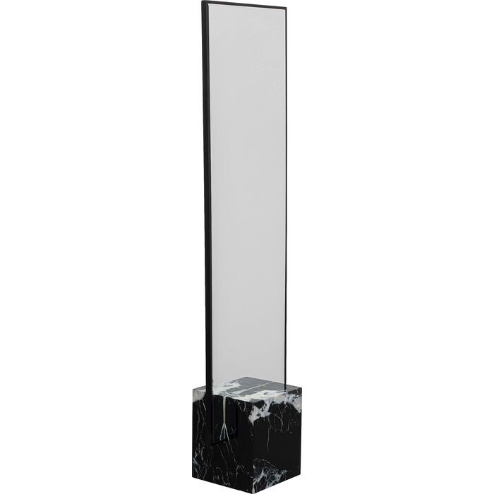 Der Standspiegel "Hulda Schwarz" in den Maßen 46 x 180 Zentimeter ist ein elegantes und stilvolles Accessoire für Ihr Zuhause. Der Spiegel verfügt über eine verspiegelte Glasfläche und wird von einem Rahmen aus titanbeschichtetem Edelstahl umrandet. Die Rückwand des Spiegels besteht aus mitteldichter Faserplatte und sorgt für Stabilität und Langlebigkeit. Der Standfuß des Spiegels besteht aus Naturstein Marmor und verleiht ihm einen edlen Look.