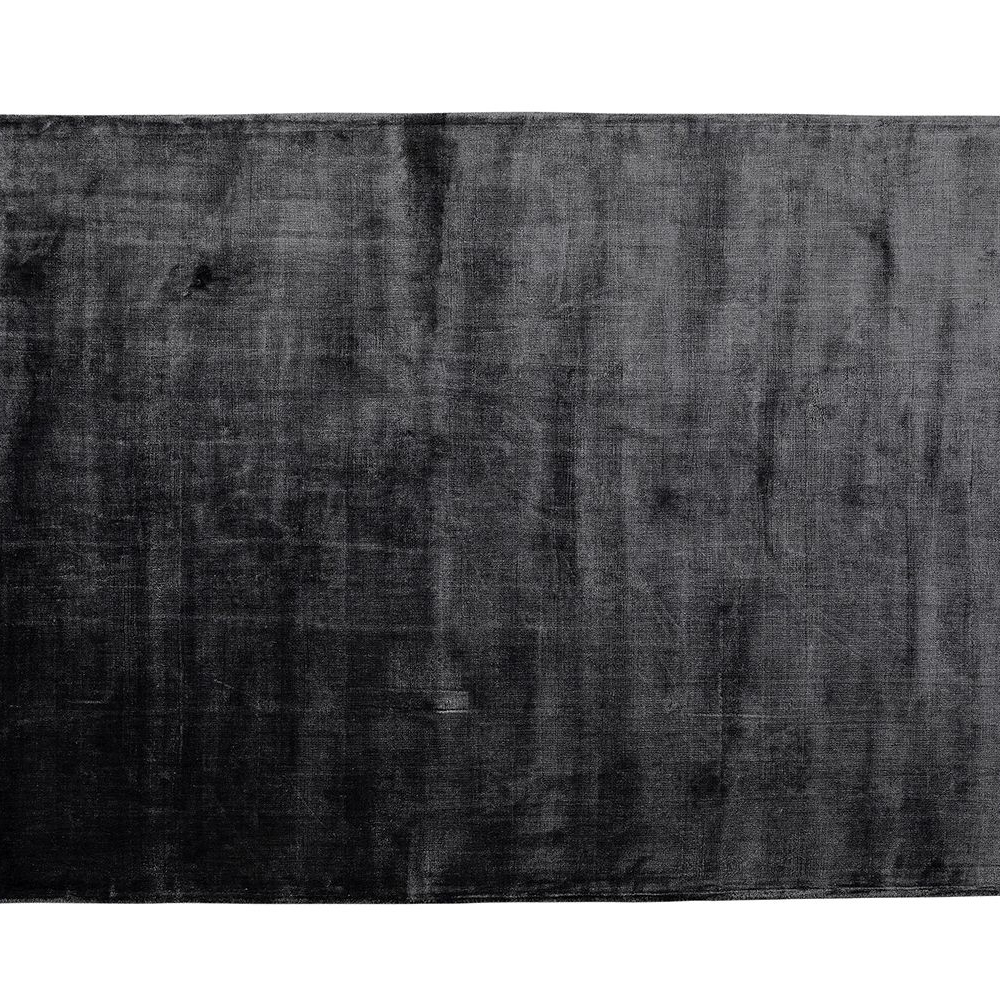 Rechteckiger Viskose-Baumwoll-Teppich in dunklem Grau mit feiner Kantennaht. Ein Teppich der Extraklasse: Das luxuriöse Viskose-Obermaterial schimmert wie Seide und fühlt sich unvergleichlich weich an Charakteristisch für Viskoseteppiche: Ihr Farbton variiert je nach Lichteinfall und Nutzung von hell bis dunkel Ein handgefertigtes Meisterwerk, dessen Eleganz an Samt erinnert. Die Rückseite ist mit einer Antirutsch-Ausstattung versehen. Um die Schönheit dieses Kunstwerks voll zur Geltung zu bringen, empfehlen wir, es frei vor ein Sofa oder im Raum zu platzieren
