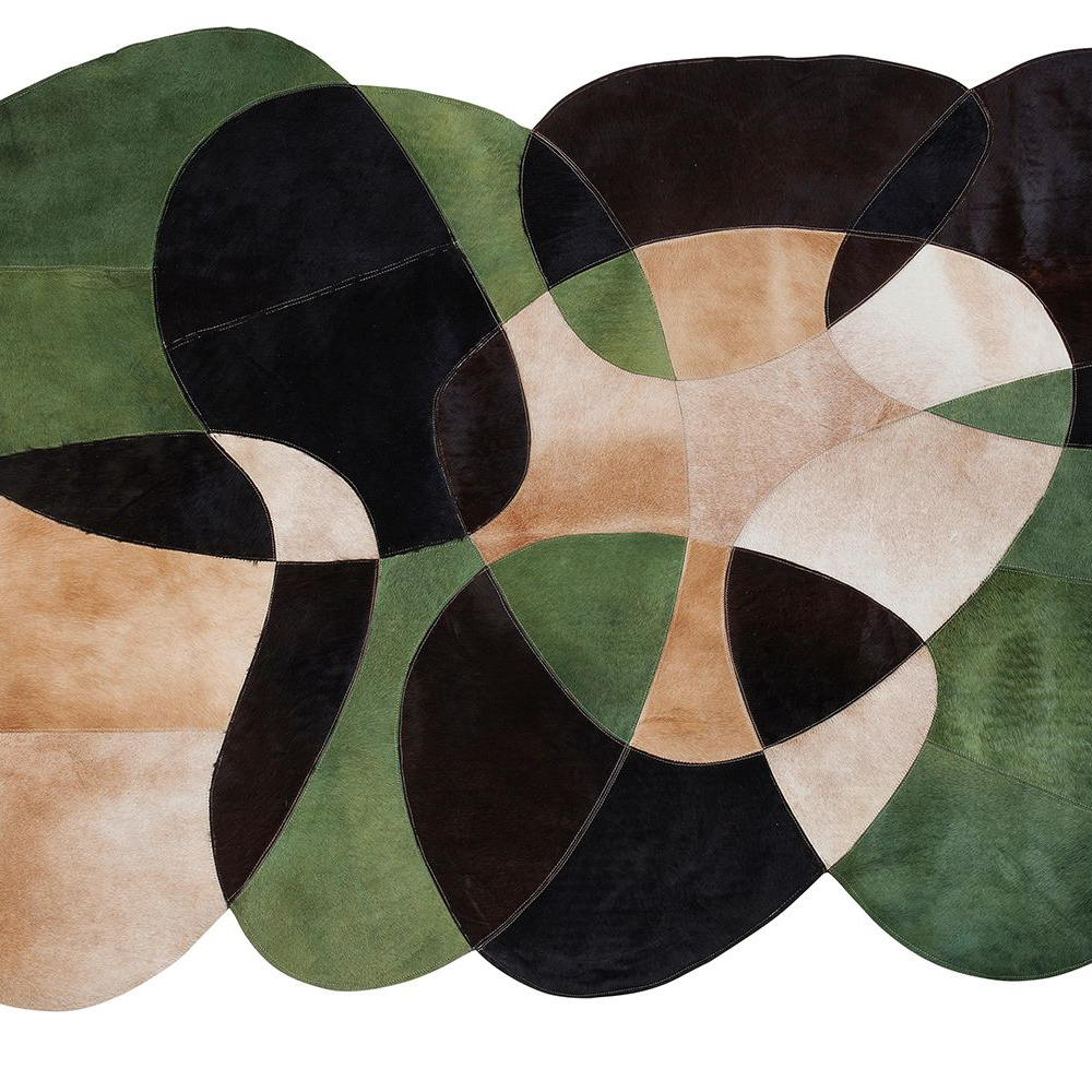 Der moderne Fellteppich in den Farben Beige, Grün und Schwarz mit den Maßen 0,5 x 170 x 240 Zentimetern (H/B/T) besticht durch seine organische Form und wird so zum Blickfang in jedem Raum. Mit Teppichen wie diesem können Sie Wohnbereiche wie die Sitzlandschaft oder den Esstisch stilvoll definieren.