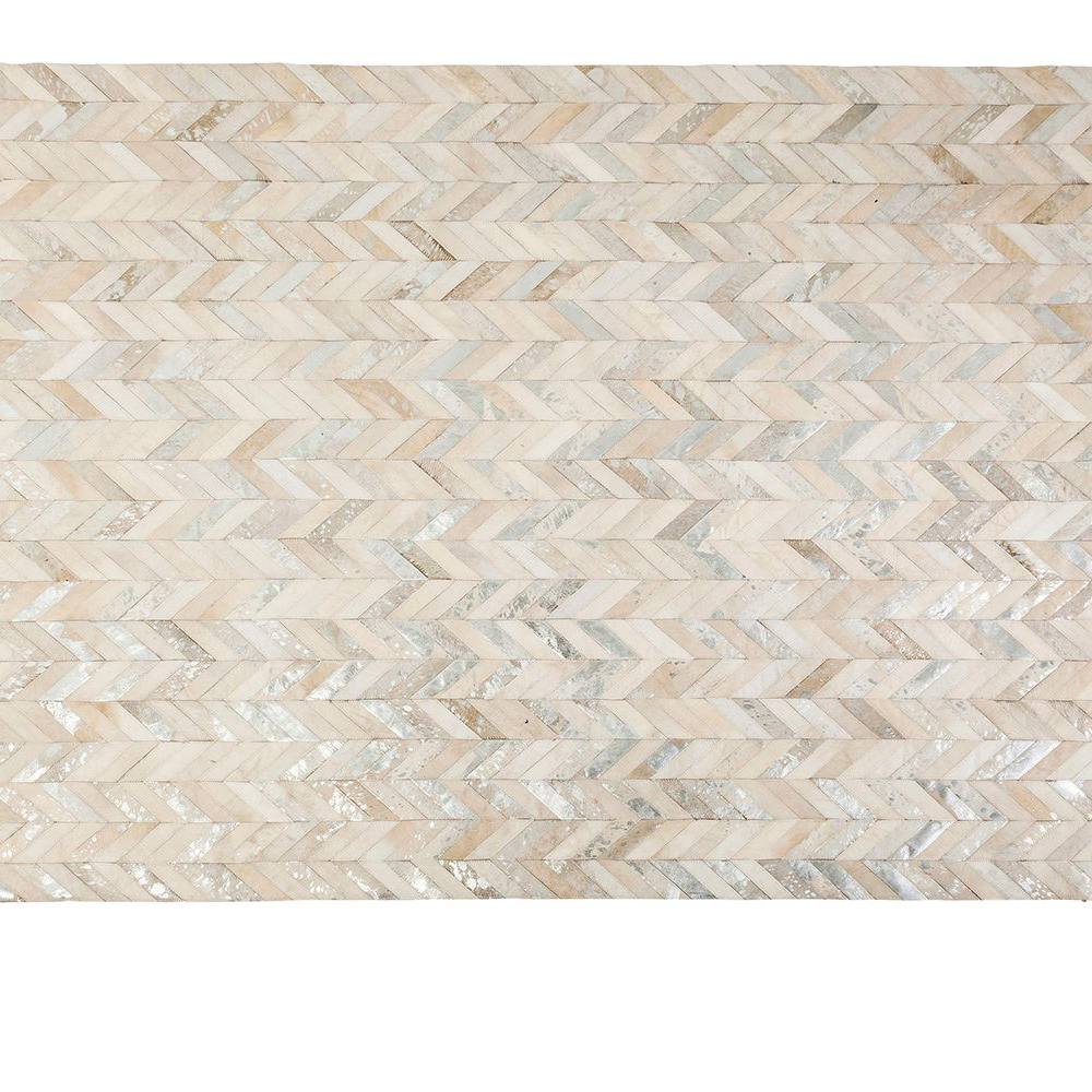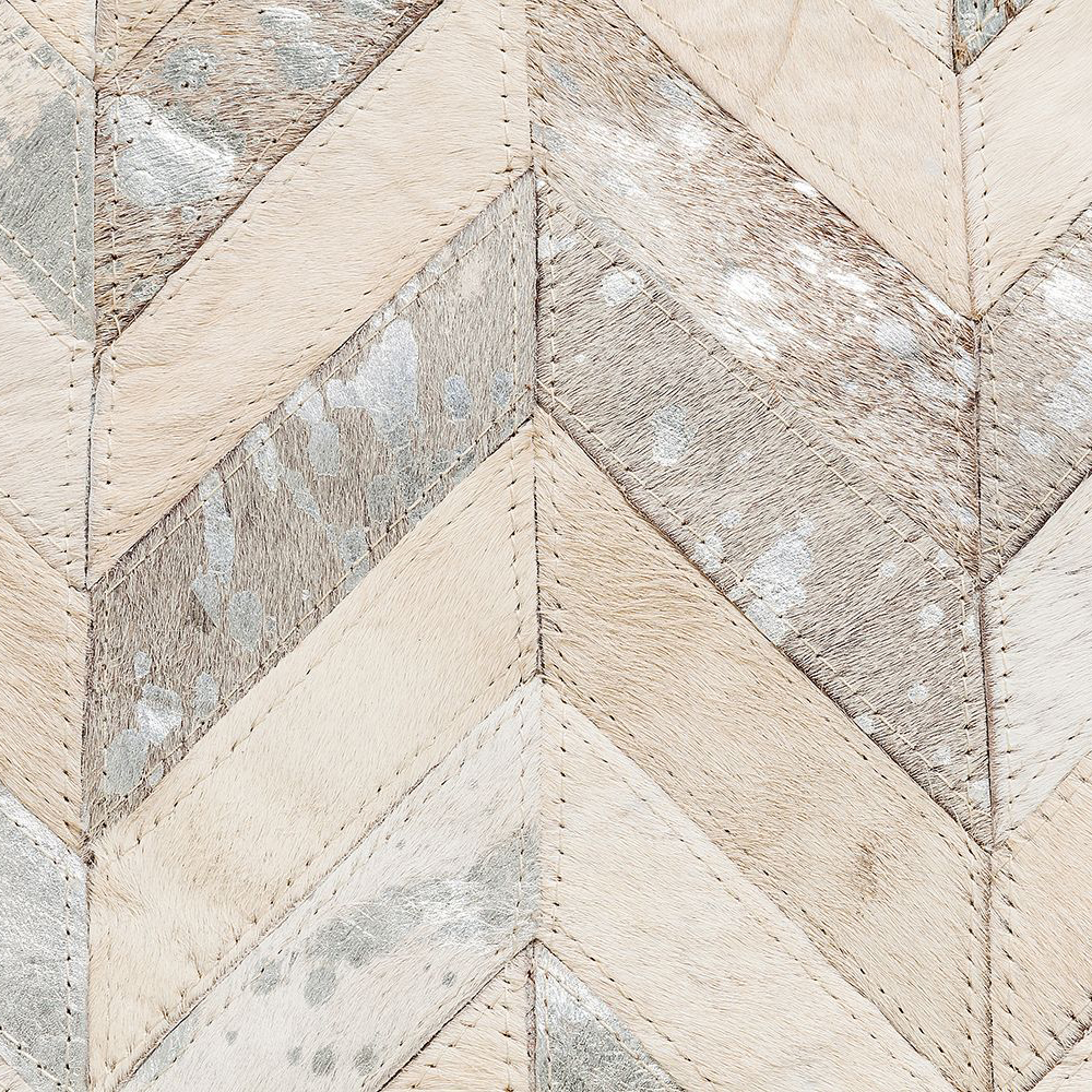 Rechteckiger Fellteppich in Beige mit den Maßen 170 x 240 Zentimeter. Patchwork-Design mit Fischgrät-Muster aus aneinandergenähten Fellstreifen. Dezente Metallic-Akzente verleihen dem Wohnzimmer-Teppich einen Hauch von Glanz. Die Unterseite besteht aus Baumwolle, für zusätzliche Sicherheit empfehlen wir eine Anti-Rutsch-Unterlage. Ein Highlight für jede Einrichtung dank der neutralen Farbe Maße: Breite: 170 cm Höhe: 240 cm