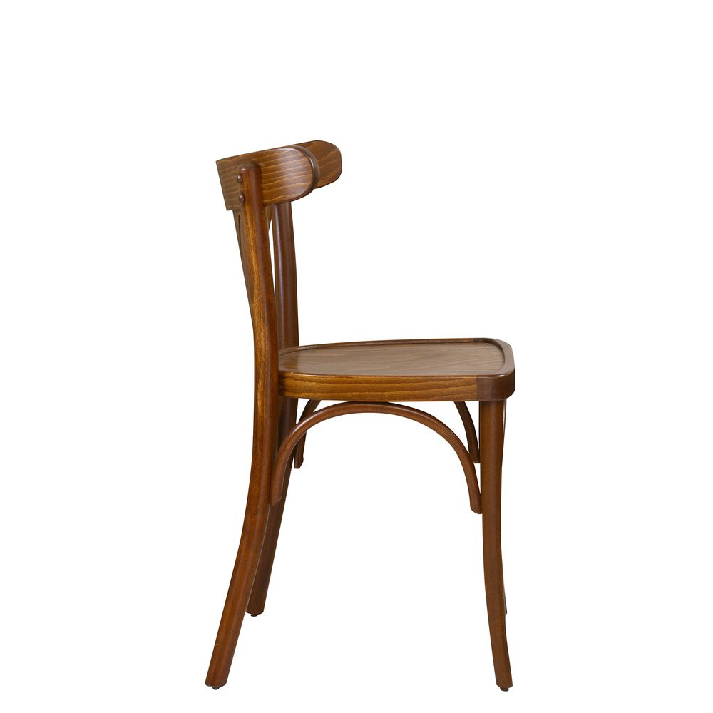 Ideal für Ihr Bistro oder Café ist der Bugholzstuhl Bistro 170. Der Gastronomiestuhl hat einen Holzsitz sowie einen verstrebten Stuhlrücken.