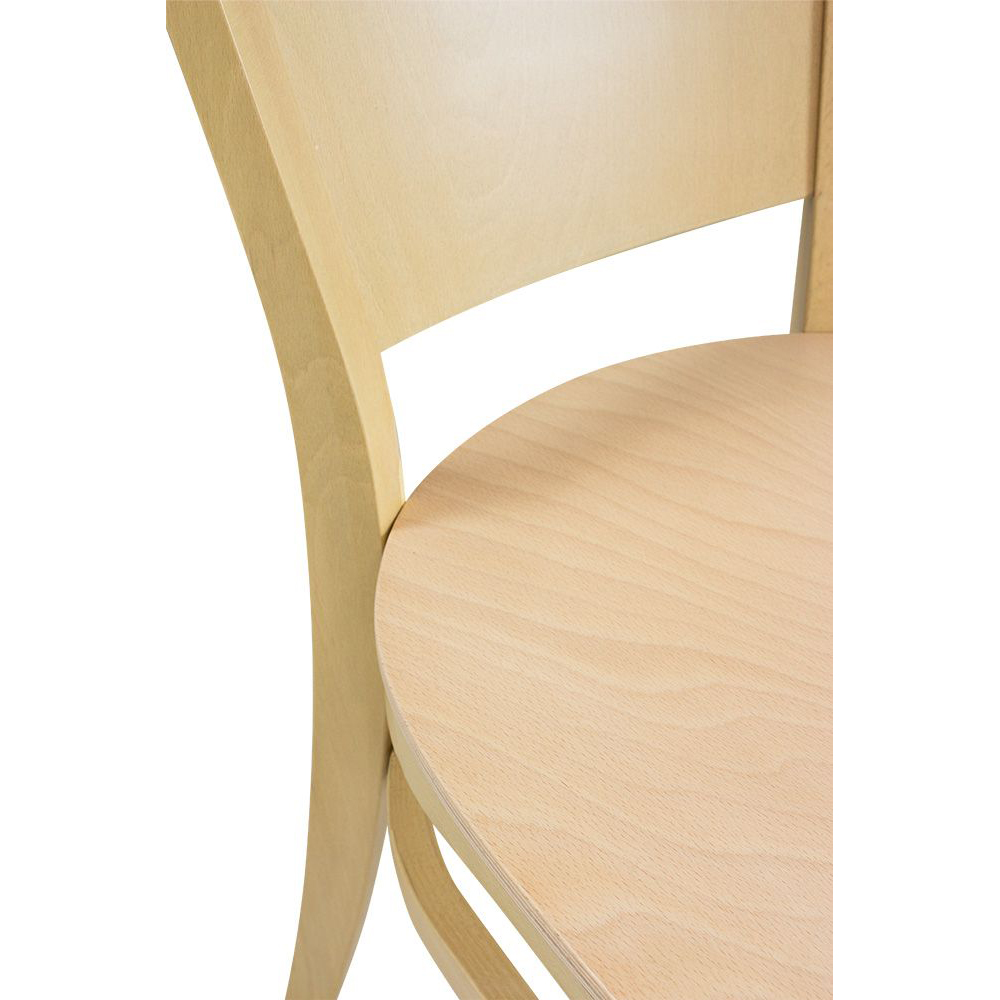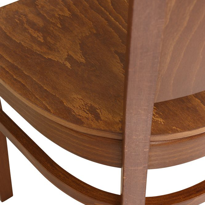 Der Stuhl besitzt eine schützende Versiegelung, die das Holz unempfindlich gegenüber gängigen Reinigungsmitteln im Objektbereich macht.