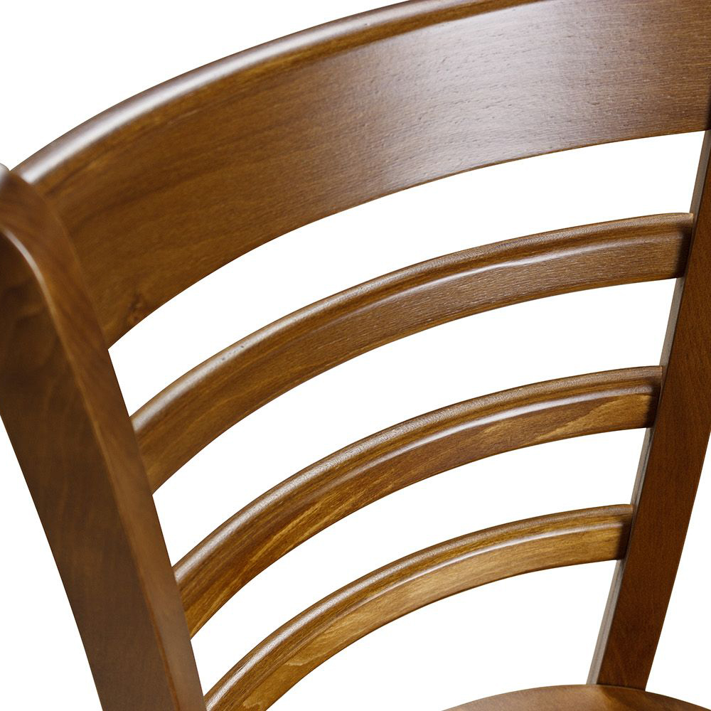 Der Hera vereint traditionelles Möbeldesign mit praxisorientierter Funktionalität. Die geschwungene Rückenlehne mit horizontalen Verstrebungen sorgt für stabilen Halt, während der geformte Holzsitz dauerhaft formstabil bleibt. Als klassischer Gastronomiestuhl eignet sich dieses Modell besonders für langlebige Objektbestuhlung in Restaurants, Cafés oder Kantinen.