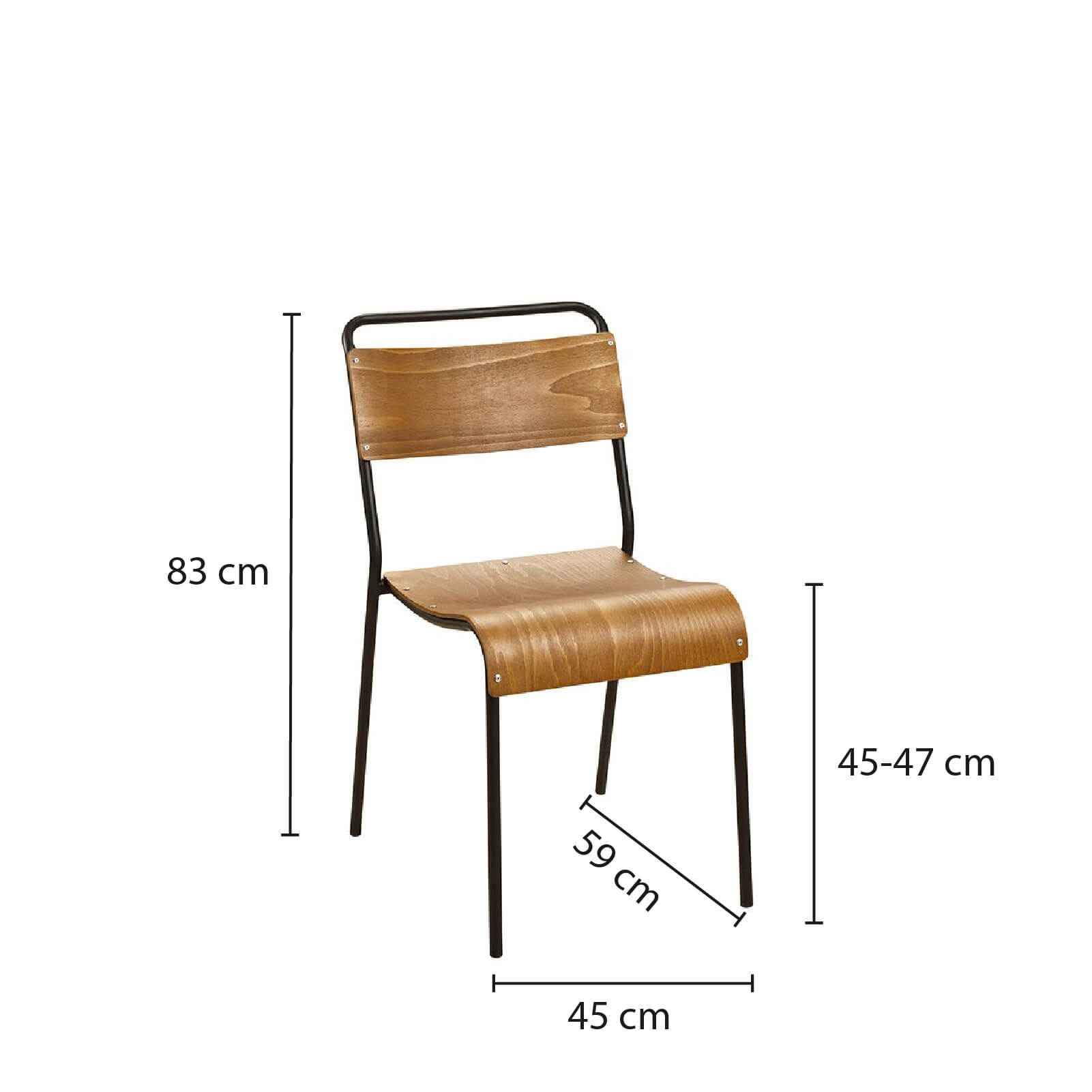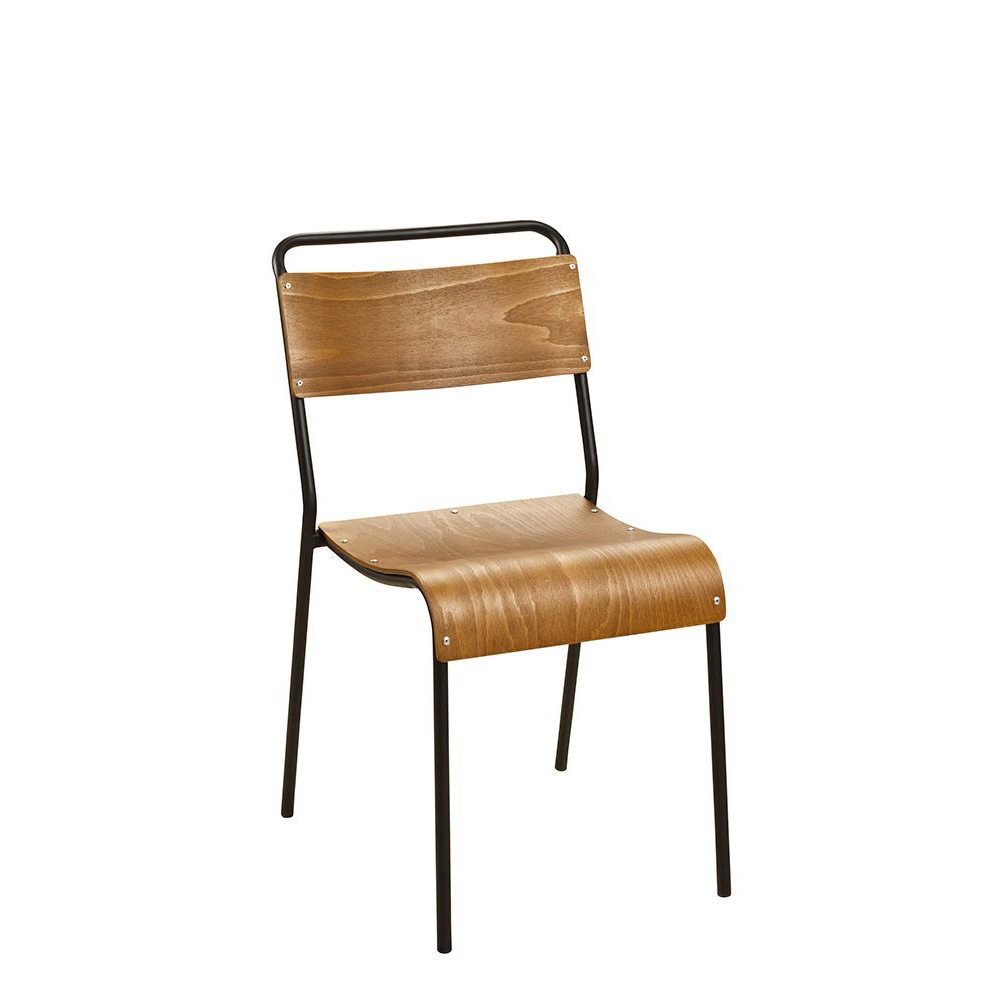 Der Scott ist ein Metallstuhl im Industrial-Look. Auf dem Metallrahmen befindet sich eine geformte Schichtholz-Sitzschale.