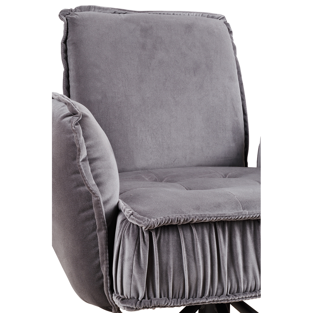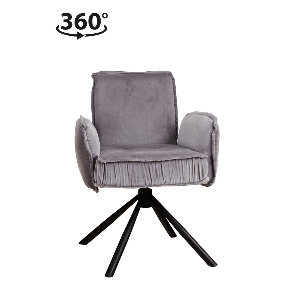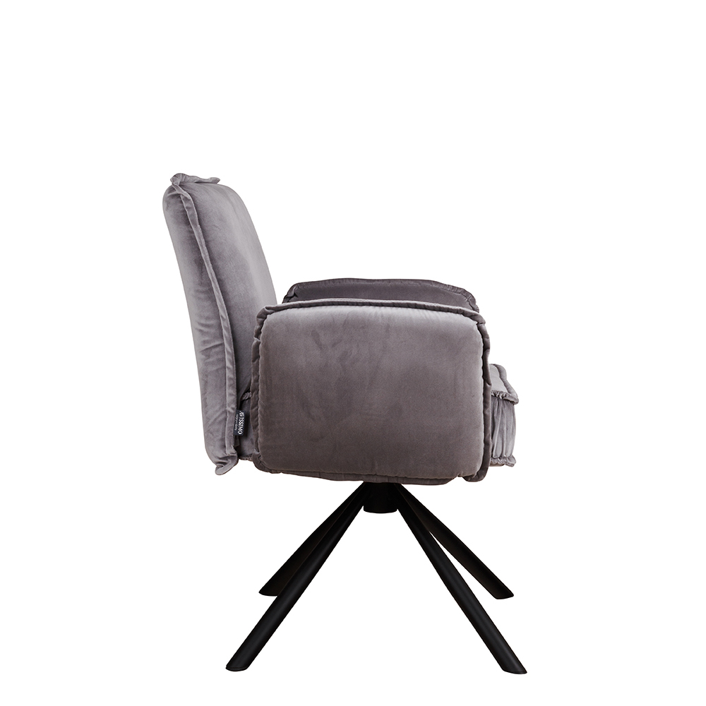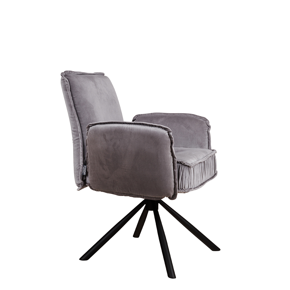 Der Armlehnenstuhl Chico-Arm-Diamond-803 ist ein stilvoller und klassischer Vollpolsterstuhl mit Metallfüßen. Die geschwungenen Armlehnen verleihen dem Stuhl eine interessante und ansprechende Optik. Die Polsterung des Stuhls ist vollständig mit hochwertigem Stoff bezogen. Er verfügt über ein Metallgestell mit 360° Drehfuntion und Rückholfunktion.