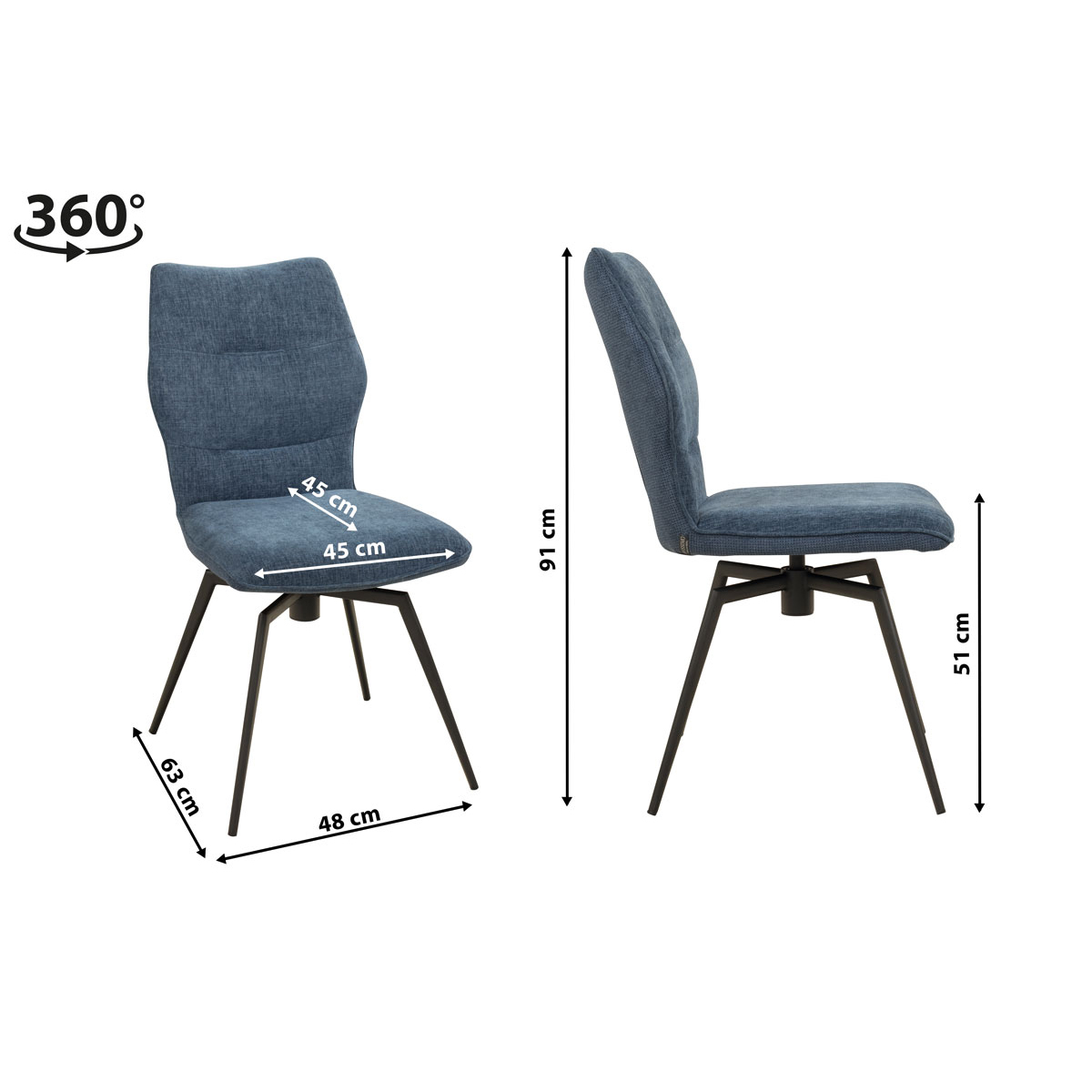 Der FONDI Caerula ist ein Vollpolsterstuhl mit Metallgestell und 360 Grad Drehfunktion. Perfekt geeignet für Gastronomie & Hotellerie.Maße:Breite 48 cmHöhe 91 cmTiefe 63 cmSItzhöhe 51 cmSitzbreite 45 cmSitztiefe 45 cm