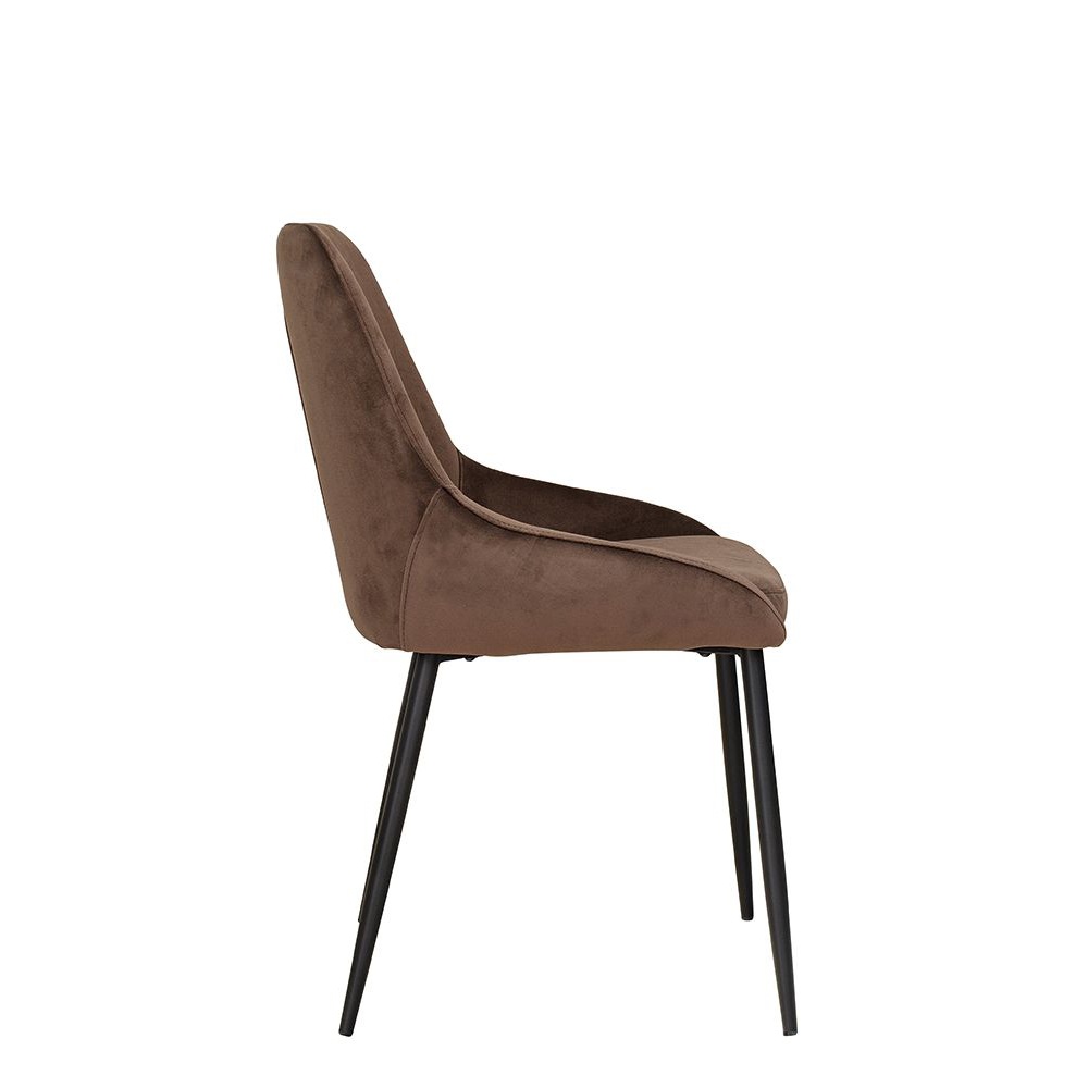 Das Gewebe fühlt sich angenehm samtig an. Dieser Stuhl bringt Chic in Ihre Gasträume.