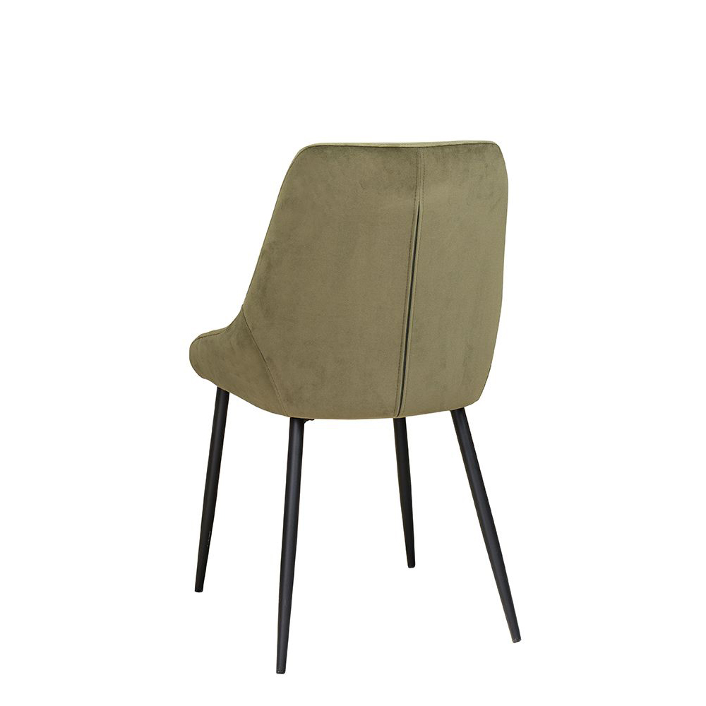 Das Gewebe fühlt sich angenehm samtig an. Dieser Stuhl bringt Chic in Ihre Gasträume.
