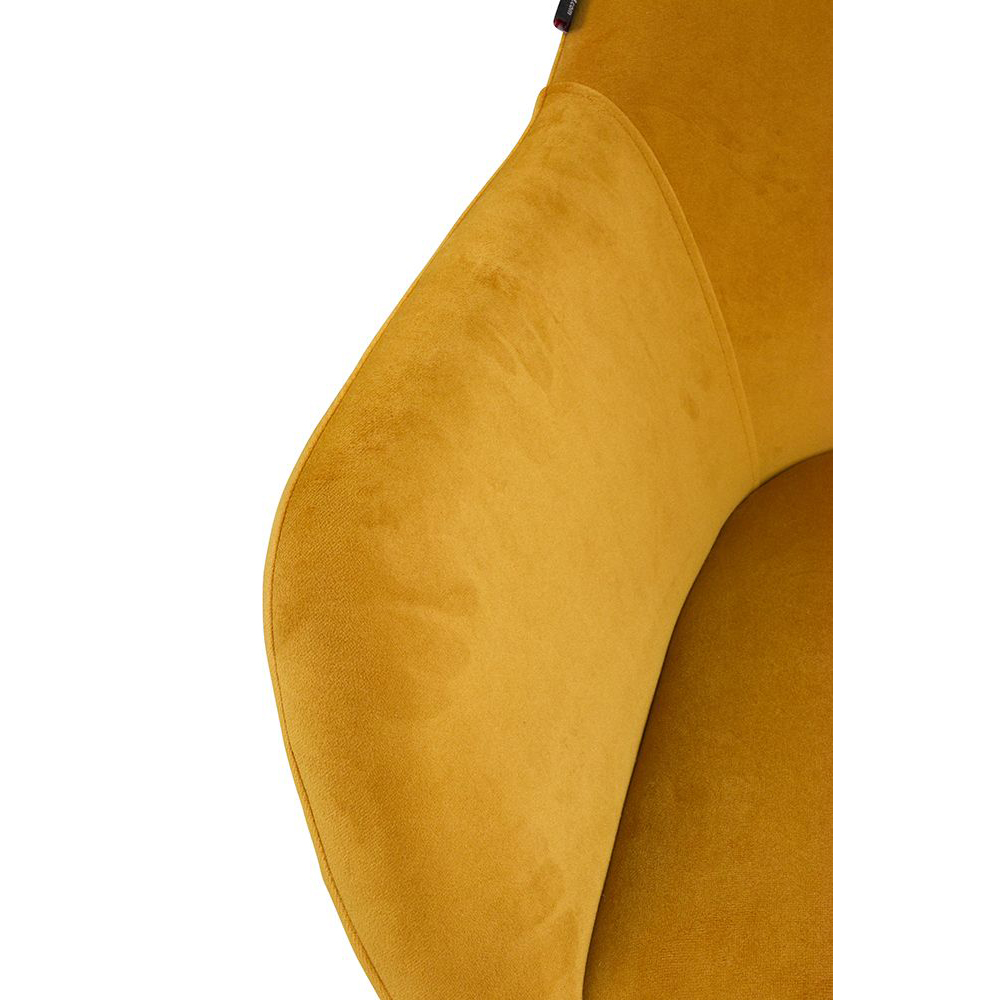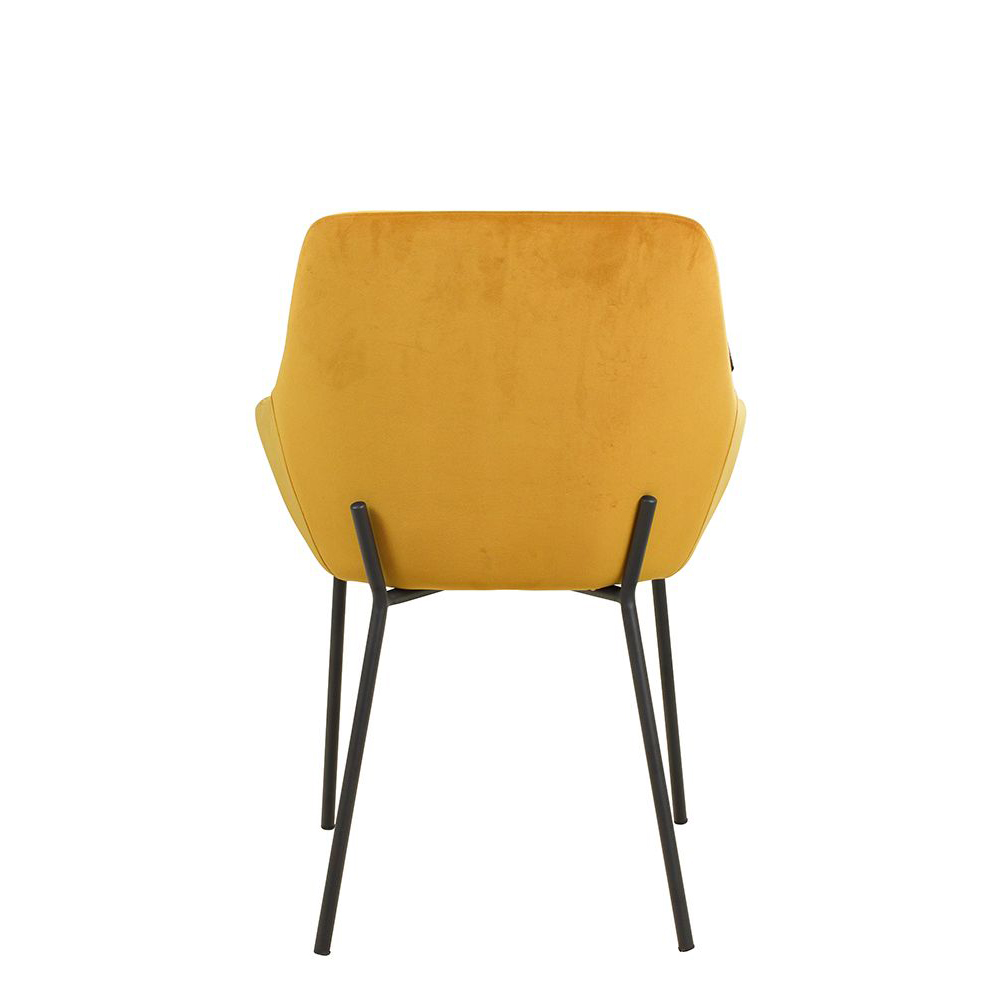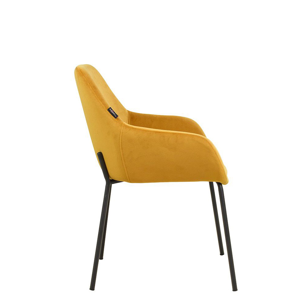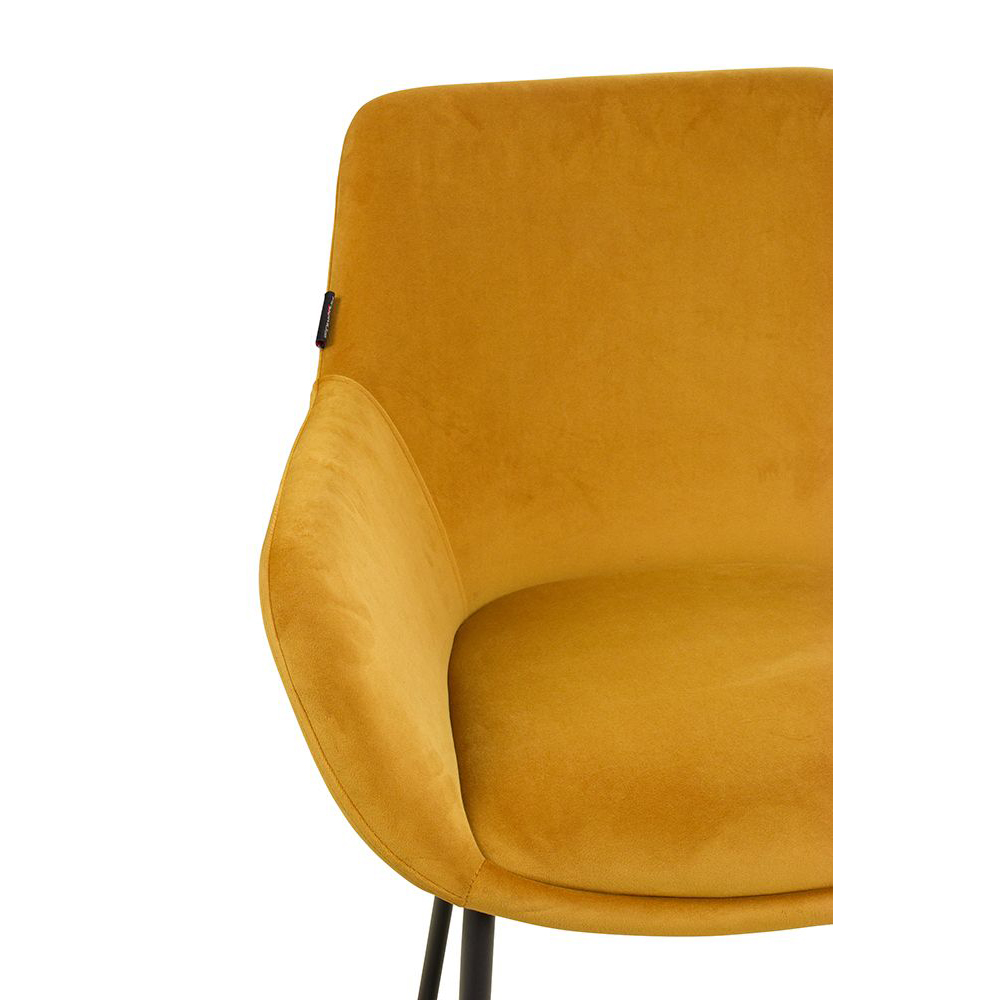 Der Revogo ist ein Vollpolsterstuhl mit Metallgestell, der mit Veloursstoff bezogen ist. Der Bezug hat einen samtartigen Glanz und fühlt sich angenehm weich an.