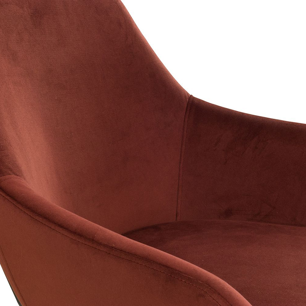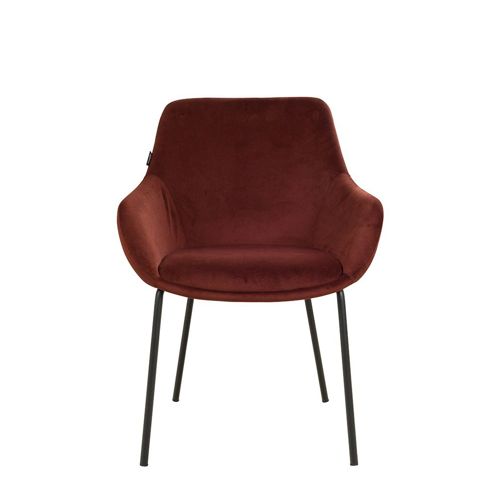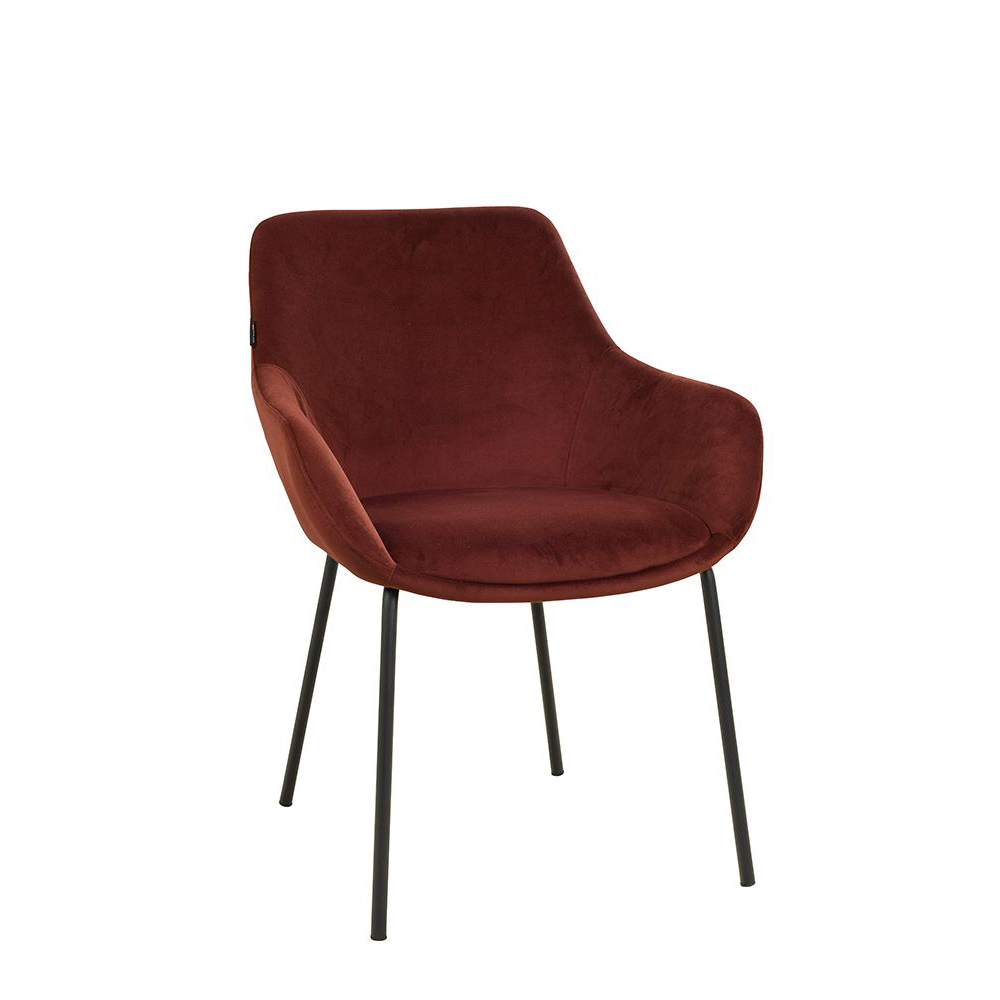 Der Revogo ist ein Vollpolsterstuhl mit Metallgestell, der mit Veloursstoff bezogen ist. Der Bezug hat einen samtartigen Glanz und fühlt sich angenehm weich an.