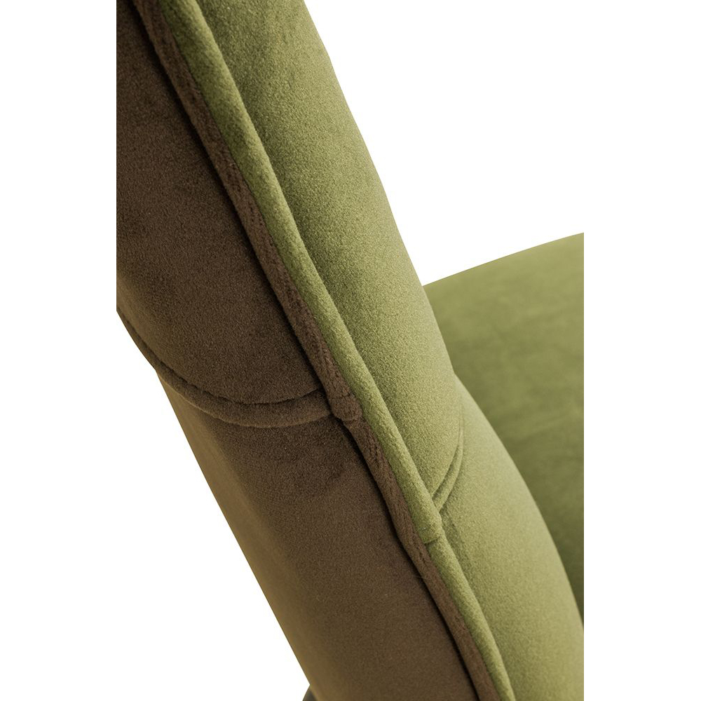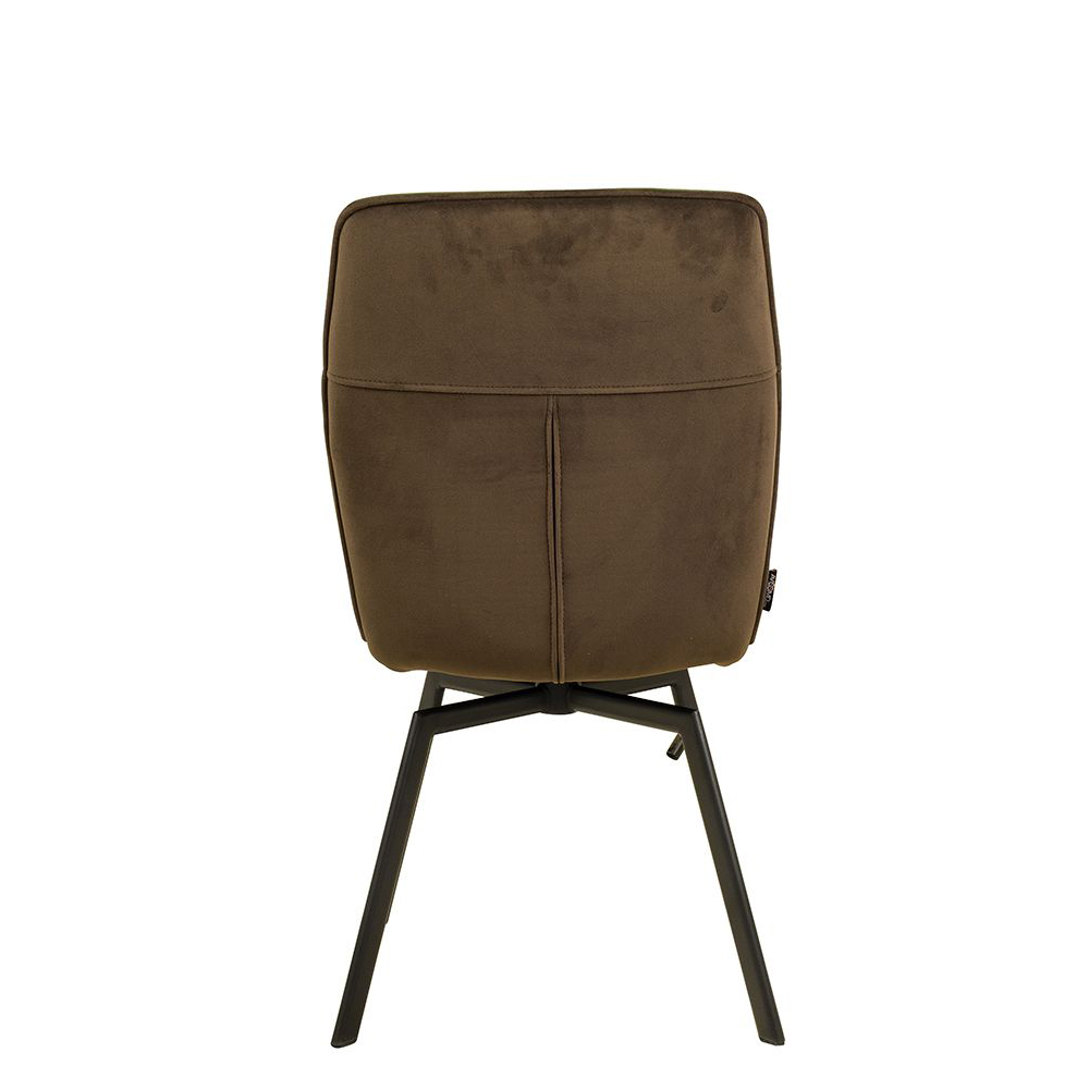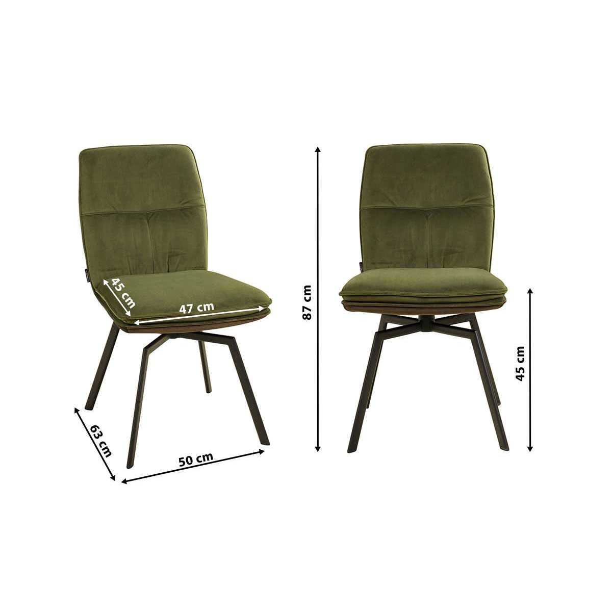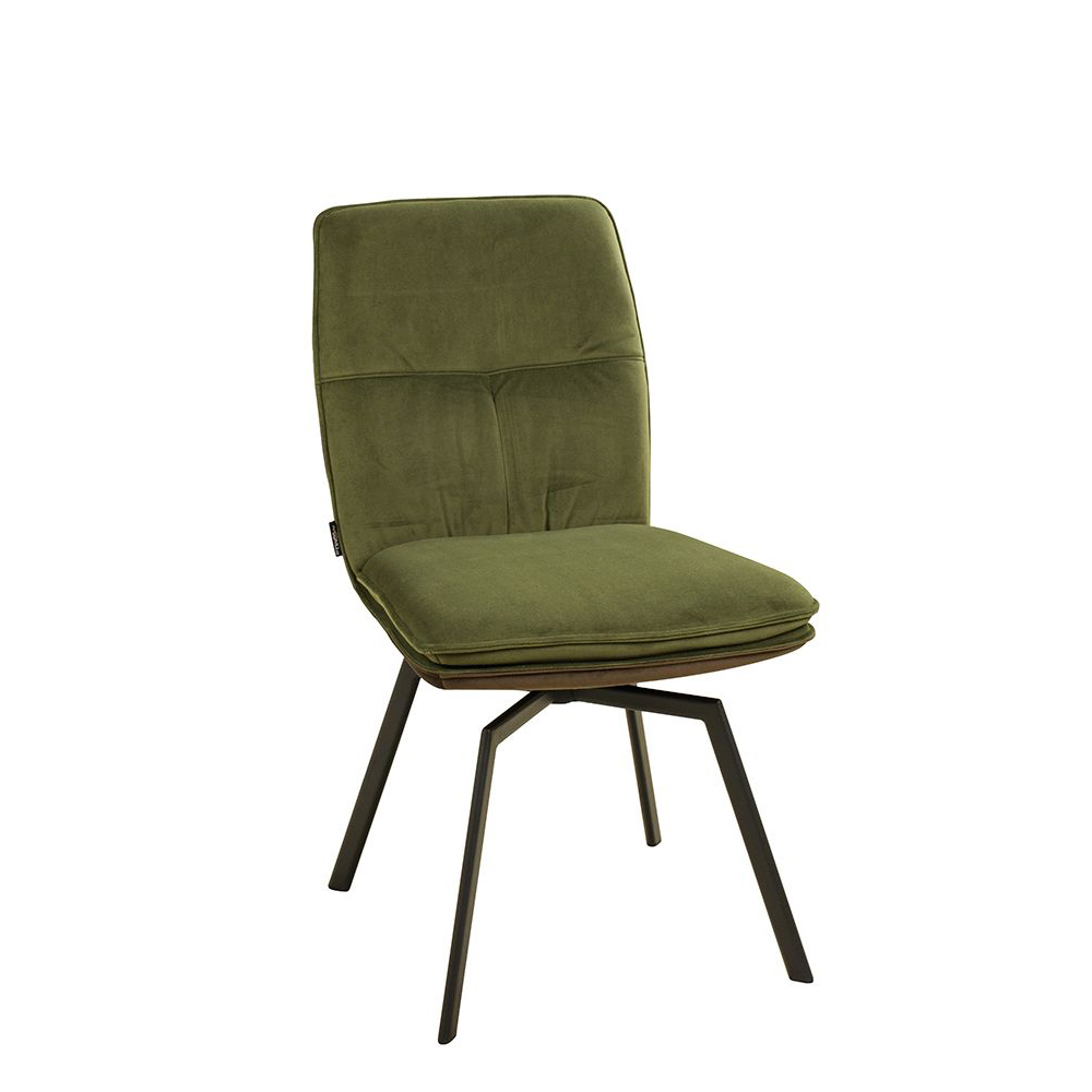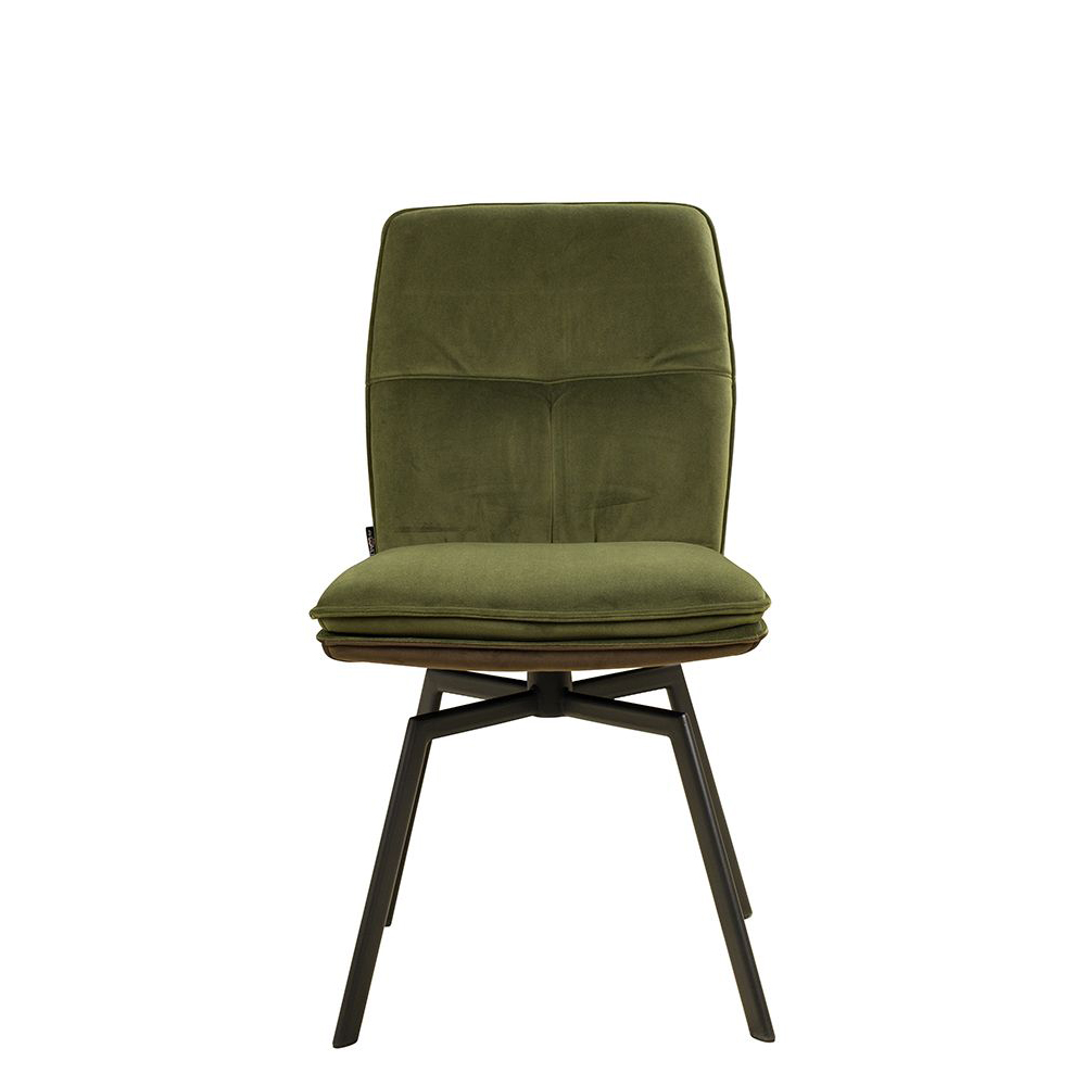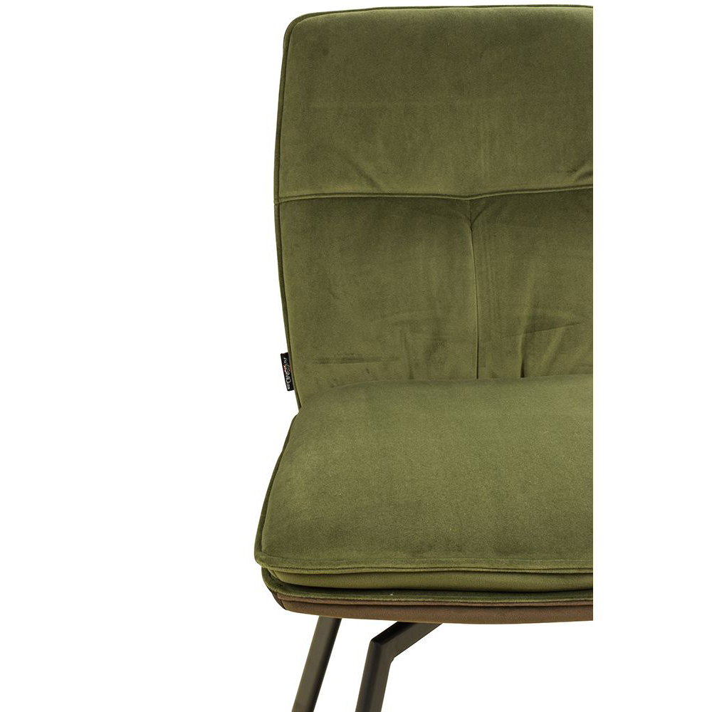Der Voggo Forest Duotone ist ein Vollpolsterstuhl mit Metallgestell, der mit Veloursstoff bezogen ist. Der Bezug hat einen samtartigen Glanz und fühlt sich angenehm weich an.
