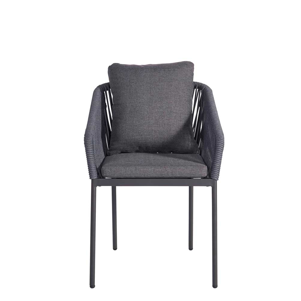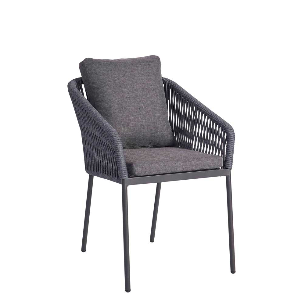 Der Fionna Grey vereint modernes Design mit praktischen Funktionen, die in der Gastronomie und Hotellerie unverzichtbar sind. Das elegante Textylengeflecht, kombiniert mit einem robusten Aluminiumgestell in Anthrazit, verleiht jedem Außenbereich ein gehobenes Ambiente. Dank der komfortablen Sitz- und Rückenkissen in Grau bietet er Sitzkomfort für Gäste – selbst bei längerem Verweilen. Die Stapelbarkeit ermöglicht eine einfache Lagerung, während die outdoortaugliche Verarbeitung den Einsatz auch unter wechselnden Wetterbedingungen erlaubt.