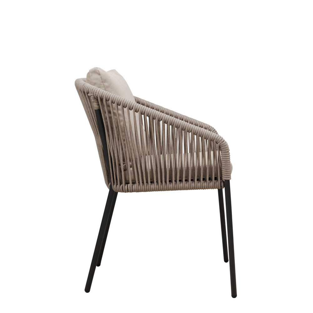 Der Fionna Sand vereint modernes Design mit praktischen Funktionen, die in der Gastronomie und Hotellerie unverzichtbar sind. Das elegante Textylengeflecht, kombiniert mit einem robusten Aluminiumgestell in Anthrazit, verleiht jedem Außenbereich ein gehobenes Ambiente. Dank der komfortablen Sitz- und Rückenkissen in Sand bietet er Sitzkomfort für Gäste – selbst bei längerem Verweilen. Die Stapelbarkeit ermöglicht eine einfache Lagerung, während die outdoortaugliche Verarbeitung den Einsatz auch unter wechselnden Wetterbedingungen erlaubt.