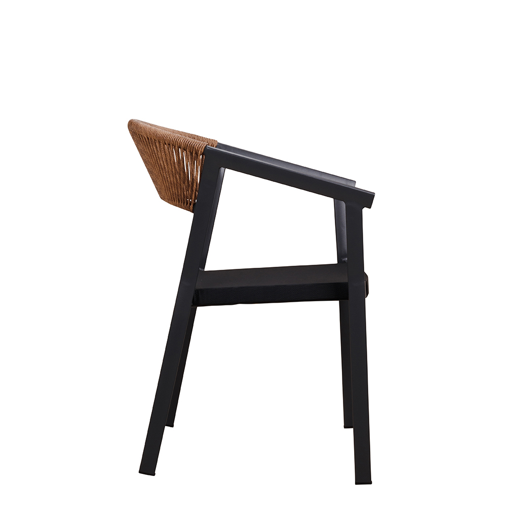 Ja, der Stuhl besteht aus witterungsbeständigem Aluminium und pflegeleichten Outdoor-Materialien – eine gute Wahl für dauerhafte Außenbestuhlung in der Gastronomie.