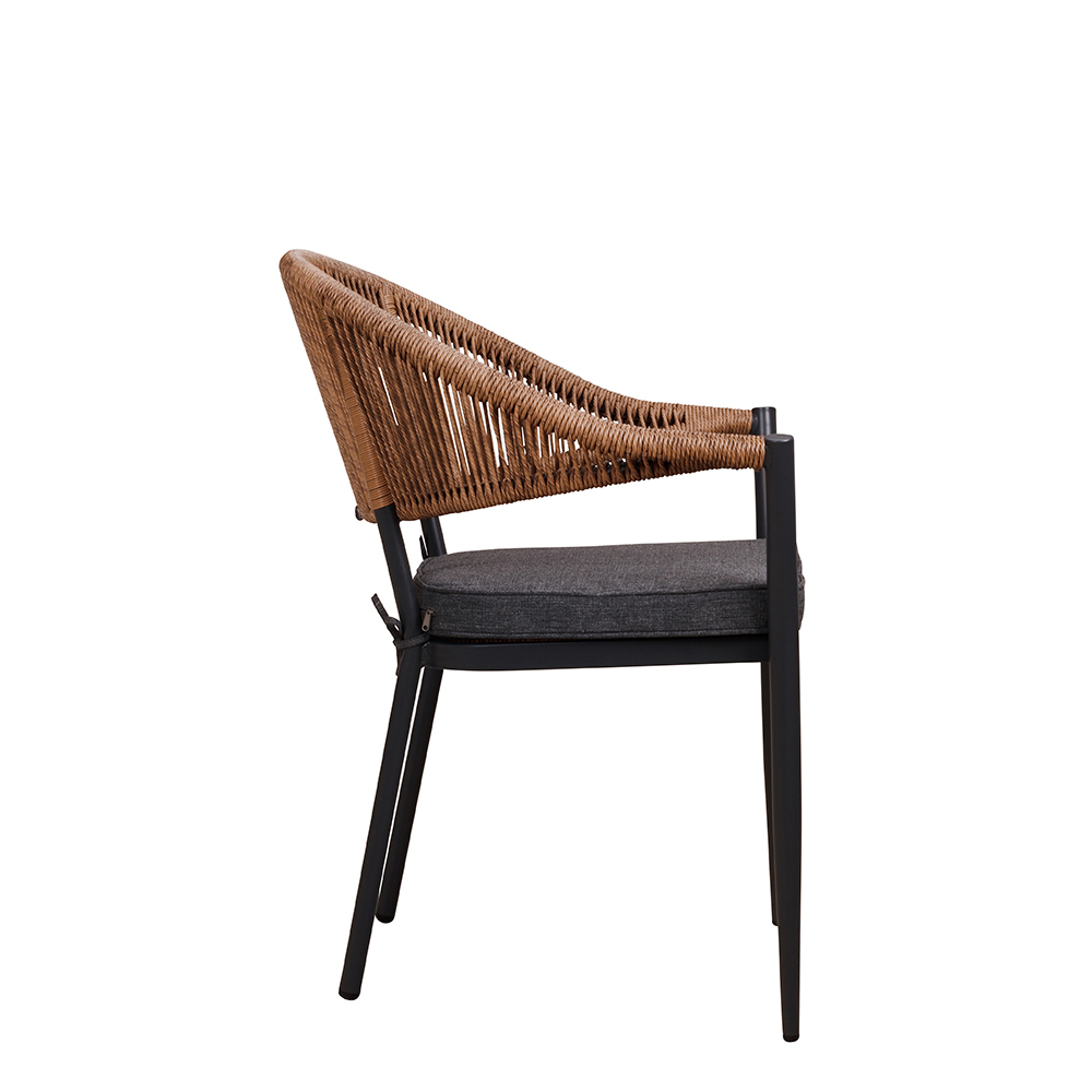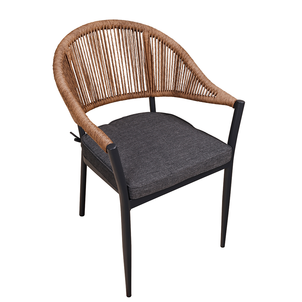 Dank des inkludierten Kissen und der komfortablen Armlehnen bietet der Romero-Stuhl einen hohen Sitzkomfort, der Ihre Gäste zum Verweilen einlädt. Die hochwertigen Materialien gewährleisten, dass der Stuhl sowohl wetterbeständig als auch pflegeleicht ist, was ihn zu einer praktischen und zugleich ästhetischen Wahl für jeden gastronomischen Außenbereich macht. Außerdem ist der Stuhl stapelbar.