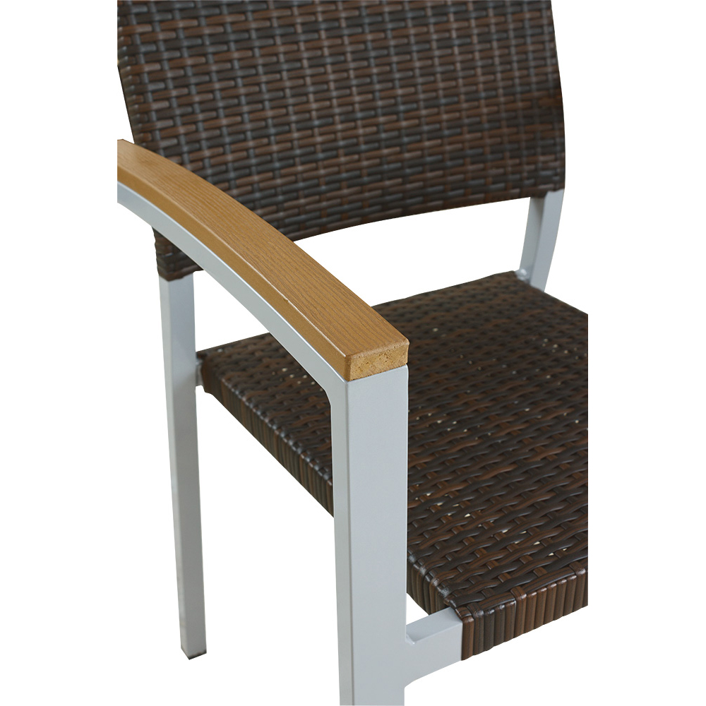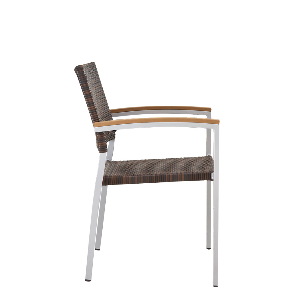 Der Verbania Burned ist ein hochwertiger Outdoor-Stuhl, der die klassische Rattan-Ästhetik mit der Funktionalität moderner Gastronomiemöbel vereint. Entwickelt für die professionelle Außenbestuhlung in Gastronomie und Hotellerie, überzeugt dieser Gartenstuhl durch ein rostfreies Aluminiumgestell, UV-beständiges Geflecht und elegante Polywood-Armlehnen.