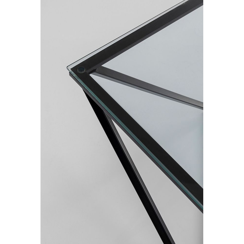 Ein Couchtisch, der mit seiner Diamant-Form zum Schmuckstück Ihres Sitzbereichs wird. Er ist aus hochwertigem Stahl gefertigt und verfügt über eine quadratische Tischplatte aus klarem Sicherheitsglas. Das grafische Gestell verleiht dem Beistelltisch einen modernen und zeitlosen Charakter. Schwarz ist vielseitig kombinierbar, sei es mit Gold, Silber, kräftigen Farben oder als Akzent in neutralen, natürlichen Wohnfarben. Durch die Kombination des Glastisches mit Beistelltischen aus derselben Serie können Sie mühelos einen klaren und aufgeräumten Look schaffen.