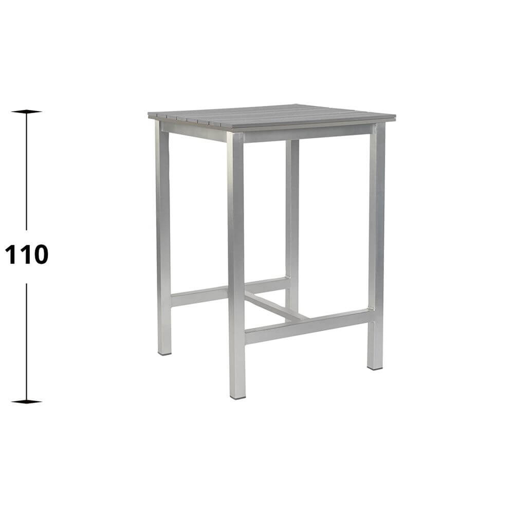 Das Simeo-High-Tischgestell mit Polywood-Lattung eignet sich hervorragend für den Außenbereich, insbesondere für Bars.