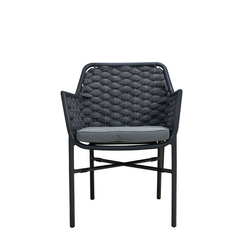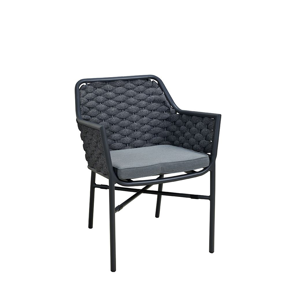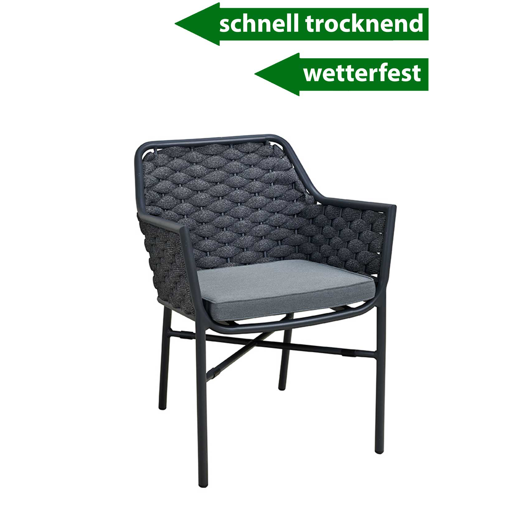 Der Ciraco black ist ein beliebter Stuhl für den Außenbereich. Rücken und Armlehnen sind mit strapazierfähigem, witterungsbeständigem und pflegeleichten Textylen-Geflecht bespannt. Das Geflecht ist schnell trocknend. Das Modell ist stapelbar.