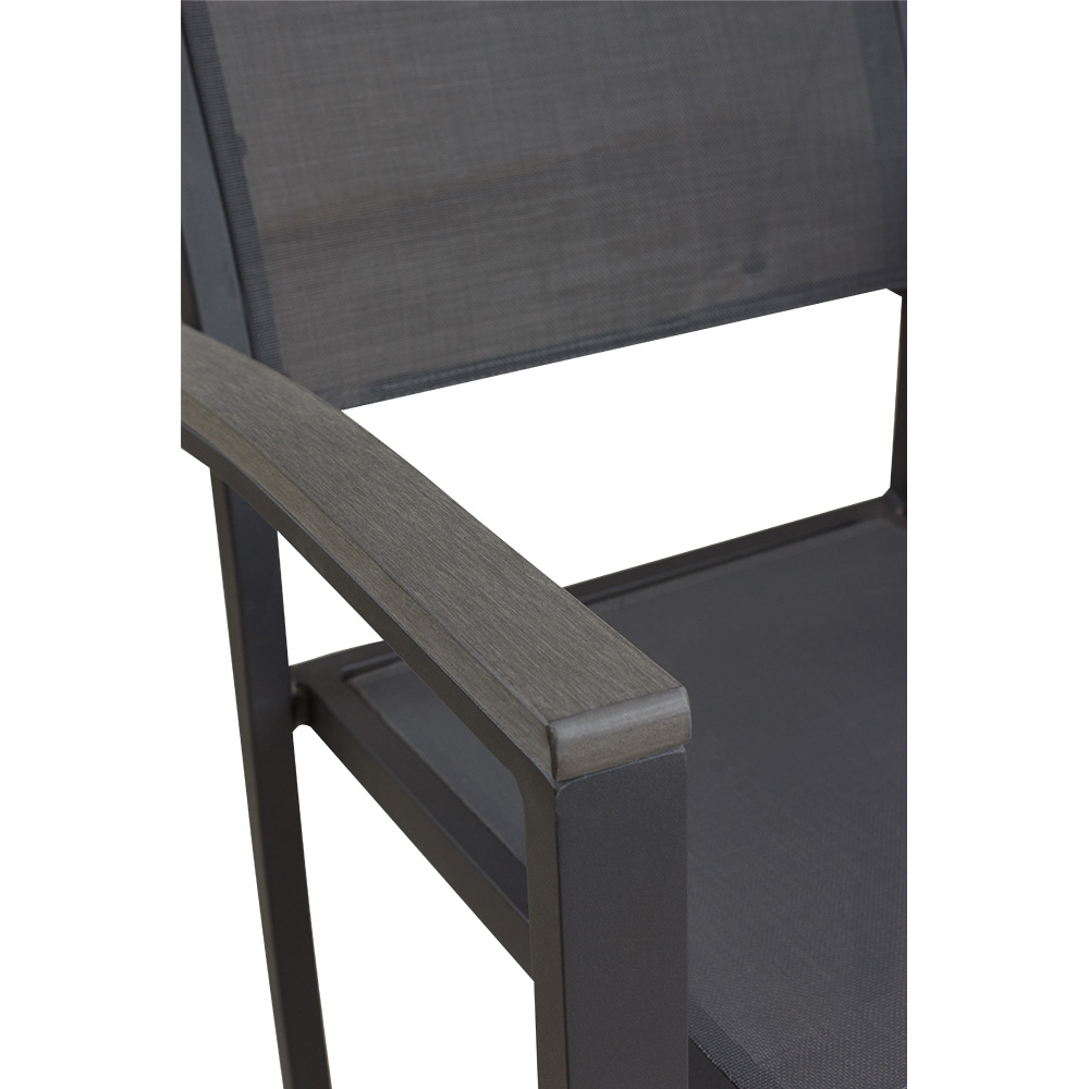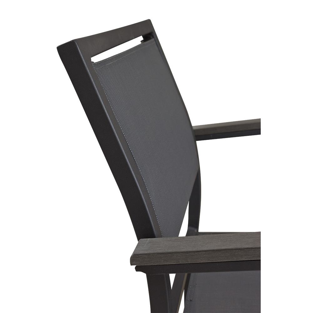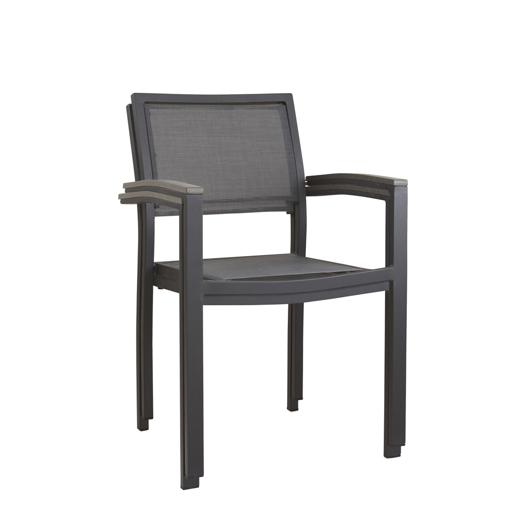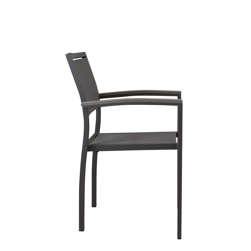 Der Georgia Anthrazit ist eine gute Wahl für stilvolle und funktionale Außenbereiche in der Gastronomie, Hotelgewerbe und Veranstaltungsservice. Dank des stabilen Aluminiumgestells und der langlebigen Textilen-Bespannung bietet er nicht nur hohen Komfort, sondern ist auch pflegeleicht und witterungsbeständig – sinnvoll für den intensiven Einsatz im Freien. Die Polywood-Armlehnen verleihen dem Stuhl eine angenehme Haptik und fügen sich harmonisch in das zeitlose Design ein.