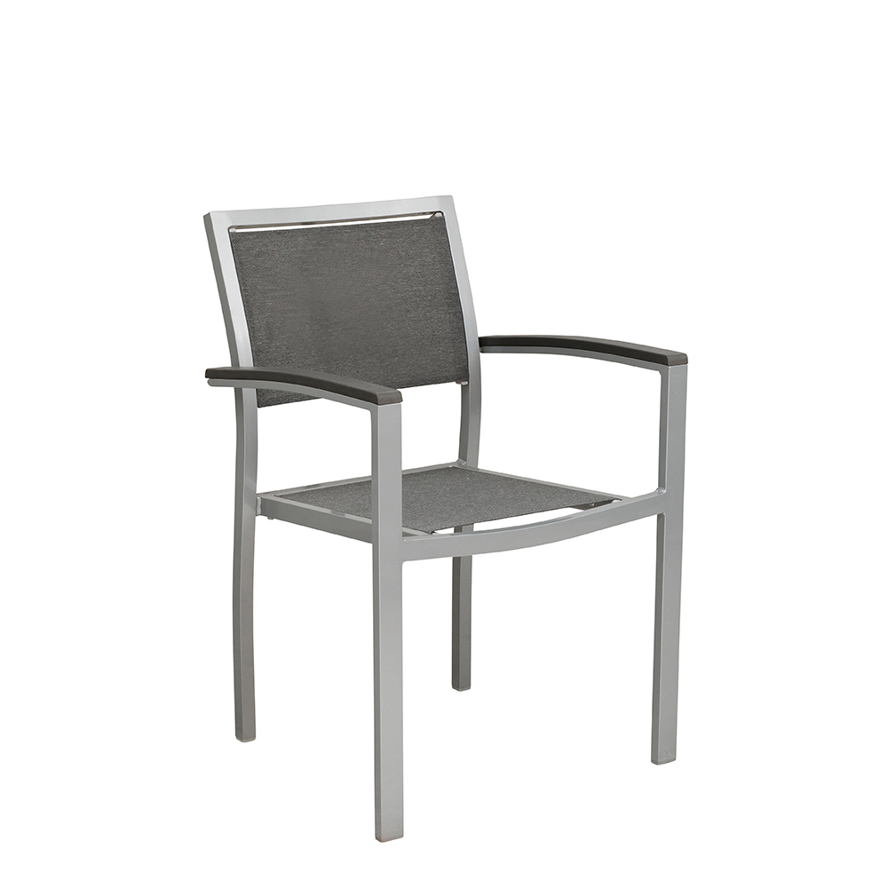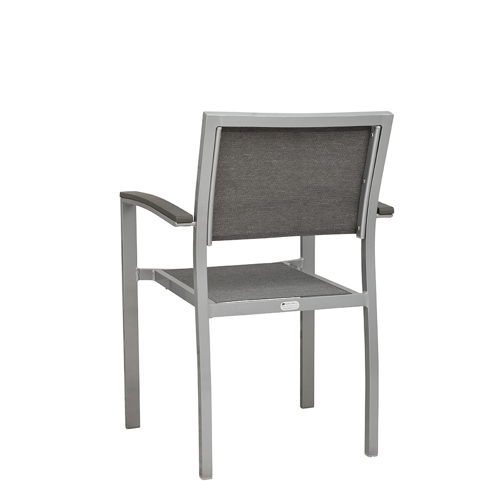 Der Georgia Silber-Mixed-Grey ist eine gute Wahl für stilvolle und funktionale Außenbereiche in der Gastronomie, Hotelgewerbe und Veranstaltungsservice. Dank des stabilen Aluminiumgestells und der langlebigen Textilen-Bespannung bietet er nicht nur hohen Komfort, sondern ist auch pflegeleicht und witterungsbeständig – sinnvoll für den intensiven Einsatz im Freien. Die Polywood-Armlehnen verleihen dem Stuhl eine angenehme Haptik und fügen sich harmonisch in das zeitlose Design ein.