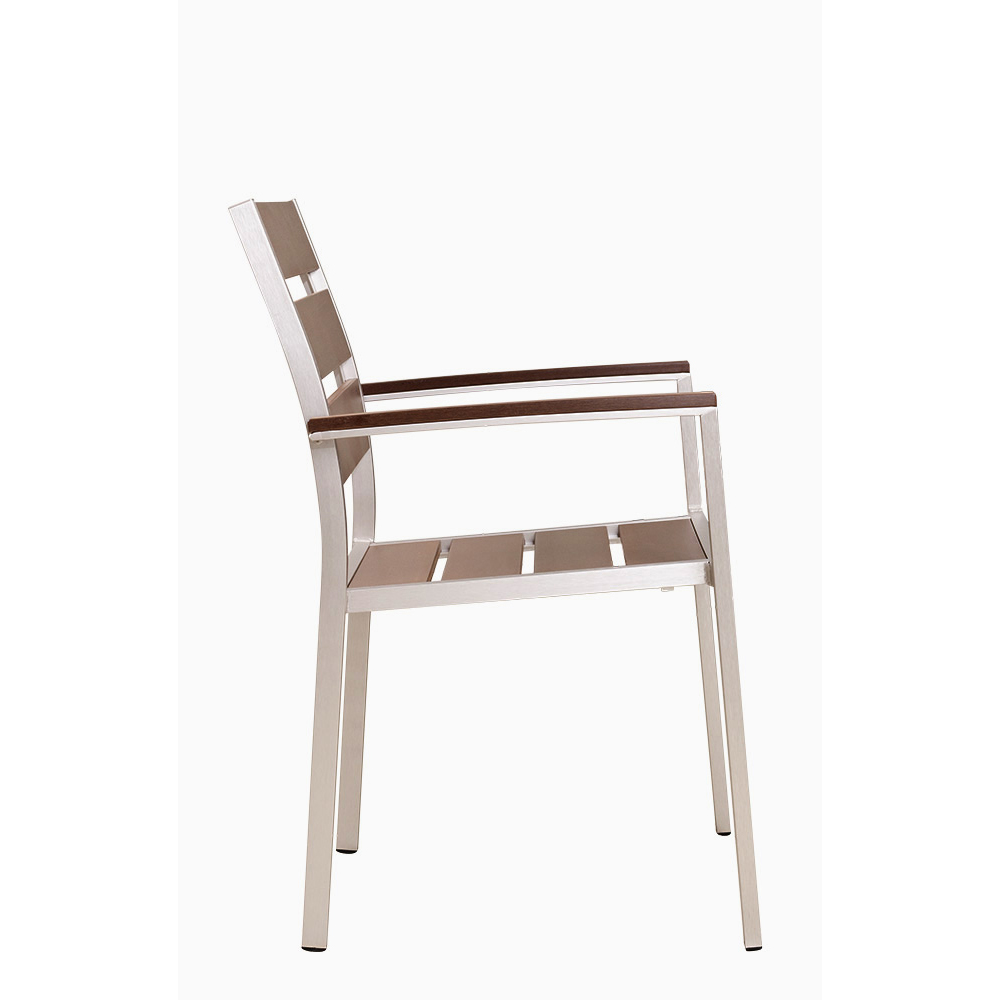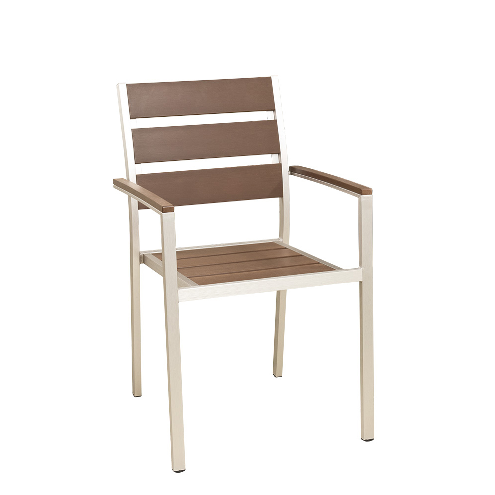 Wetterfester Gastronomiestuhl mit stilvoller Holzoptik für den Outdoor-Bereich